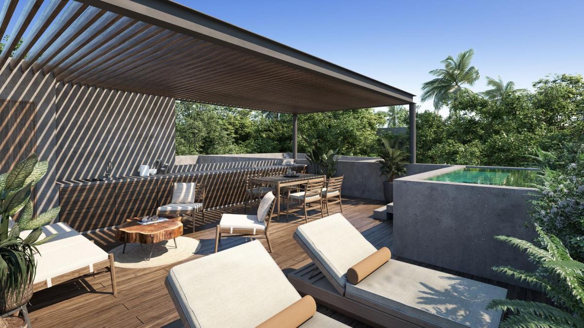 Picture a space where every detail is designed to awaken your senses and connect you with the authentic essence of Tulum. This exclusive development in the heart of Tulum District offers residences that transcend traditional housing concepts, creating a unique living experience that blends contemporary design, harmony with nature, and a profound sense of belonging.Each residence has been conceived as a personal sanctuary, where privacy and elegance merge with the warmth of local culture. From spacious terraces inviting you to contemplate the landscape to intuitively flowing interior spaces, these properties offer between 78 m2 and 155 m2 of intelligently distributed living areas. Premium finishes and natural elements create environments that inspire tranquility and wellbeing.