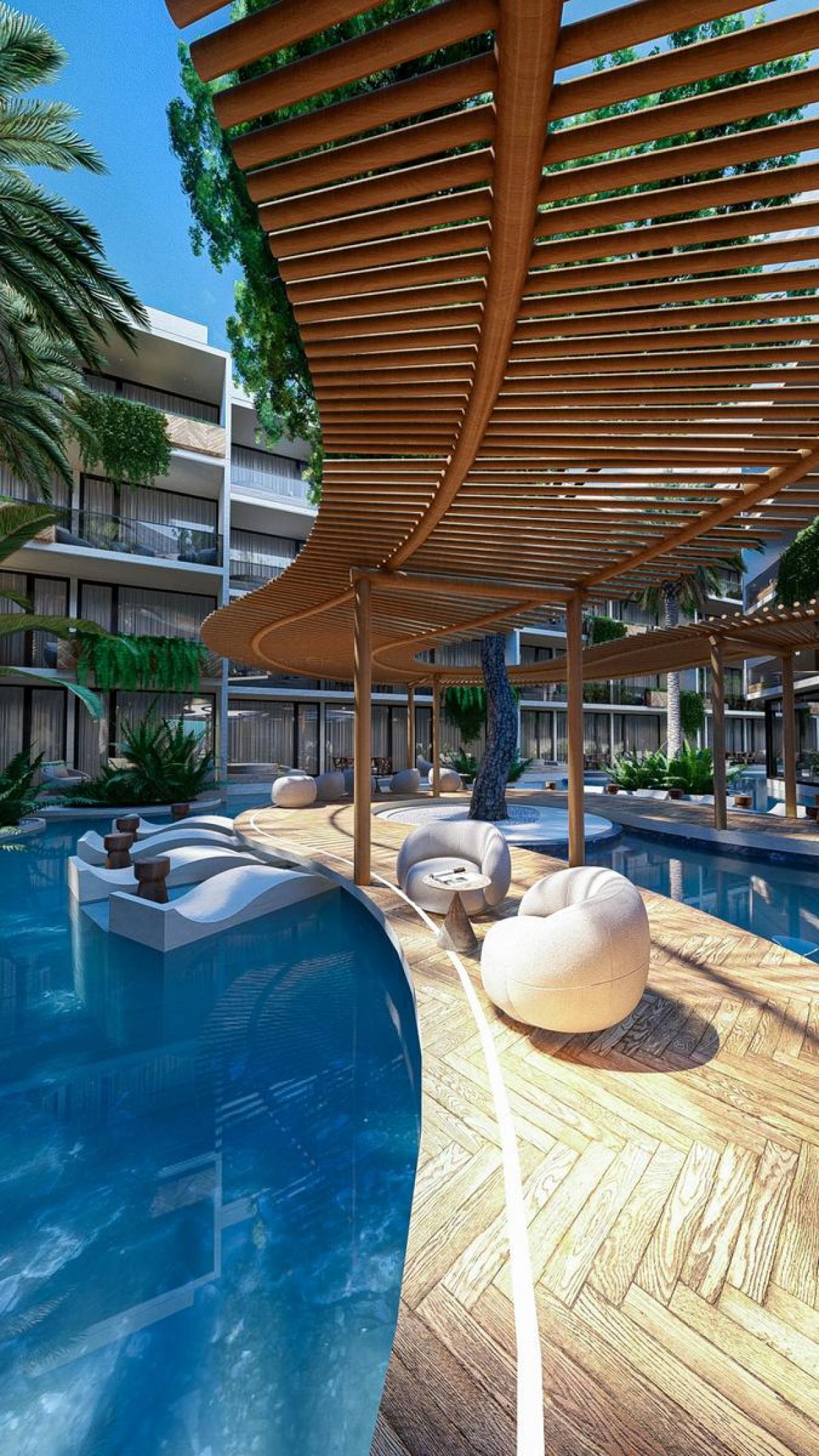 Imagine a home where architectural design becomes a sensory experience that evokes the serenity of the marine world and the warmth of the Mexican Caribbean. This exclusive 106.53-square-meter, two-bedroom apartment represents the perfect harmony between contemporary luxury and natural inspiration, created for those seeking a refuge that awakens positive emotions from the very first moment. Upon entering, you will discover a fluidly distributed space where the kitchen, dining, and living area integrate into a bright environment that naturally flows onto a private terrace with a jacuzzi, creating a personal sanctuary where stress dissolves and every sunset transforms into a moment of reconnection and inner peace.Every element in this residence has been carefully considered to stimulate a sense of wellbeing and belonging. The innovative lock-off configuration of the bedrooms offers unique flexibility, allowing you to adapt the spaces according to your needs, whether for guest privacy or as a potential source of additional income. The high-end finishes and color palette inspired by ocean hues create an atmosphere that not only satisfies practical living needs but activates emotional responses of tranquility and harmony, making every return home feel like a comforting embrace that nourishes the soul and revitalizes the spirit.