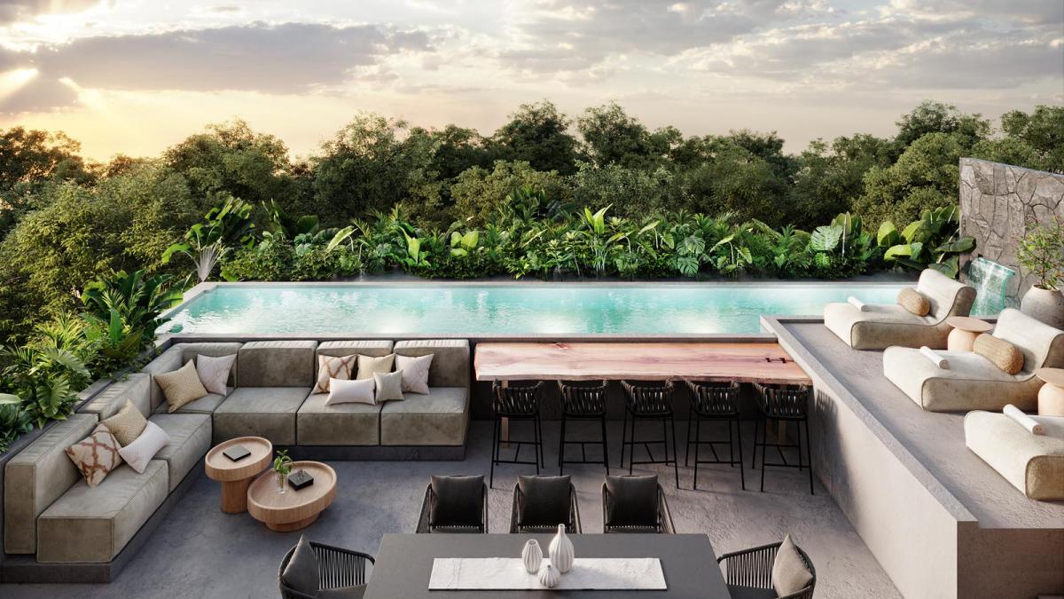 Imagine waking up each day in a private sanctuary where modern luxury seamlessly blends with the serenity of the Mayan jungle. This exceptional apartment offers 351 square meters (approximately 3,778 square feet) of intelligently designed space, creating a haven of sophistication and comfort. The residence features three spacious bedrooms, each conceived as a personal sanctuary for rest, accompanied by full bathrooms with luxury finishes that evoke the feeling of a private boutique spa, ensuring absolute privacy and well-being for residents and guests.The open floor plan flows impeccably, perfectly integrating the social areas with a private terrace that becomes a natural extension of the living room, ideal for enjoying the tropical climate and creating unforgettable moments. Natural light floods every corner through strategic floor-to-ceiling windows, creating a luminous and energetically positive atmosphere that elevates your mood. High-end finishes, including tropical wood and artisanal concrete, work in synergy to activate the senses and promote a deep feeling of connection with the surroundings, making this space much more than a home; it is a carefully curated sensory experience.