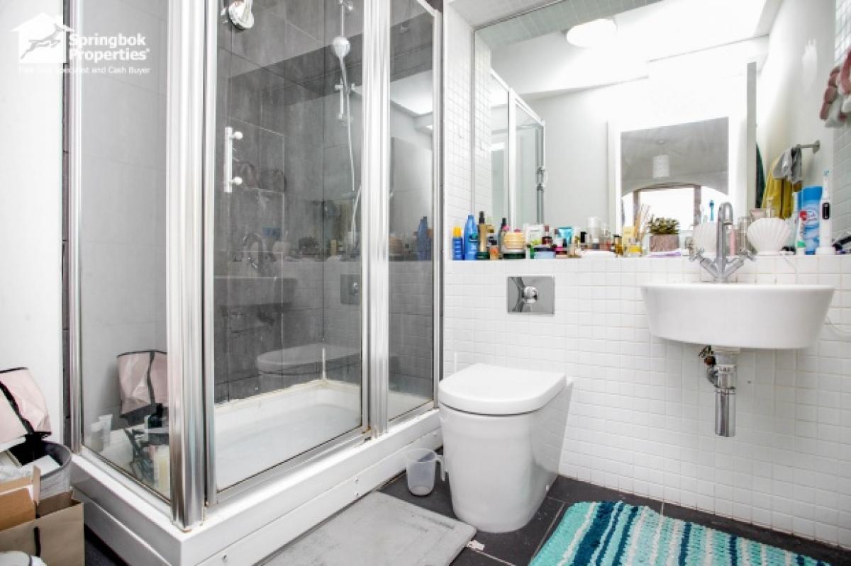 Upstairs, there are two generously sized double bedrooms, both finished with distinctive arched windows that draw in natural light. The principal bedroom benefits from its own en-suite shower room, while a further bathroom serves the second bedroom. This arrangement provides excellent flexibility, particularly for professionals or shared living.