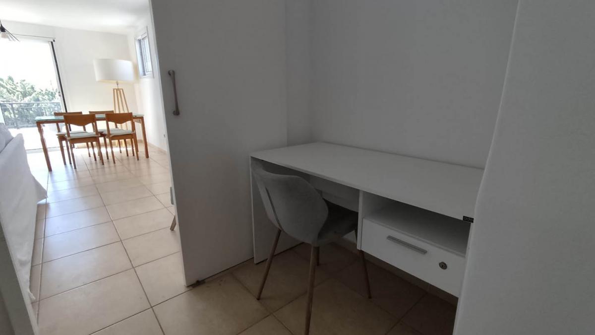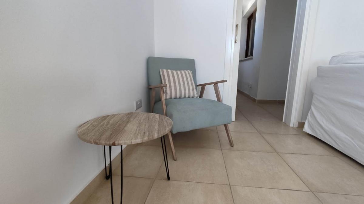 Both bedrooms are filled with natural light and offer direct access to the terrace. Thanks to the penthouse-level location, peace and privacy are guaranteed — few neighbors, no street noise, and open skies. The master bedroom is simple yet tastefully furnished with a white bed, nightstands, a lamp, a built-in wardrobe, and large sliding doors leading outside. There is more than enough space for comfortable living without overcrowding the interior.