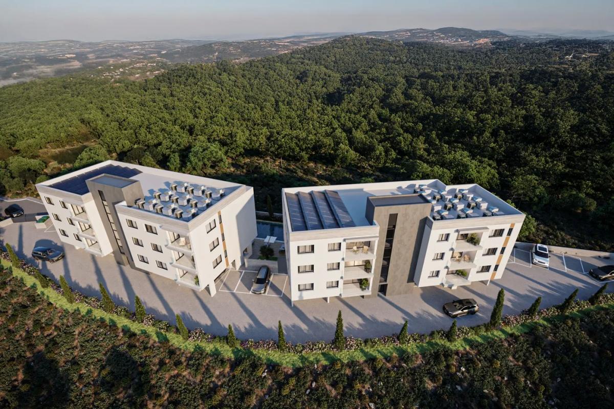 Oculus" comprises of 2 blocks of studio, 1-bedroom and 2-bedroom apartments and a plethora of on-site facilities. It is located in the sought-after area of Universal in Pafos, the most popular area for short-term rentals in Cyprus.The name of the project is inspired by the shape of the plot. Designed to blend-in with its natural environment, surrounded by tall trees that offer privacy and tranquillity, "Oculus" is an oasis located a 10-minute walk from the sea, Pafos' picturesque harbour and close to all amenities.