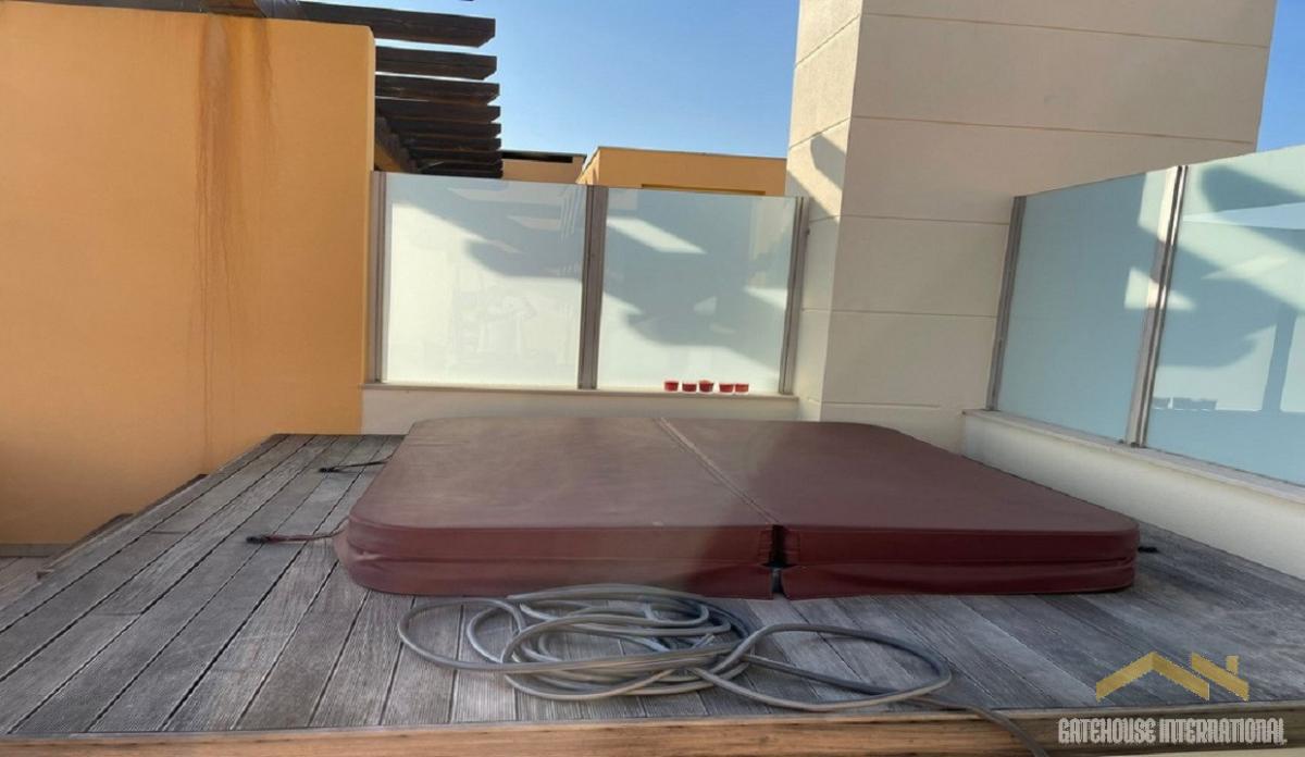 3 Bed Triplex Apartment in Laguna Vilamoura Algarve - a large 266m2 luxury apartment with great golf views on 3 floors with 3 bedrooms and 3 bathrooms plus a rooftop terrace with a hot tub, within a condominium with a 24-hour reception, communal pools and underground garage parking. This 3-level apartment has stunning views towards the sea, golf Course, pool, and the landscaped gardens. it comprises of an entrance hall, a cloakroom, a large living/dining area that opens onto a terrace, a modern and fitted kitchen, three-bedroom suites with outside terraces, a roof terrace measuring 60m2, which includes a jacuzzi hot tub. There's also an underground parking place. The condominium offers 24h reception, communal swimming pool and gardens, cafe/bar, and kids play room. The apartment has air conditioning, double glazed windows, electric curtains, and is furnished. in Brief: - entrance - cloakroom - lounge and diner - kitchen - 3 bedrooms - 3 bathrooms - roof terrace with hot tub - shared swimming pool
