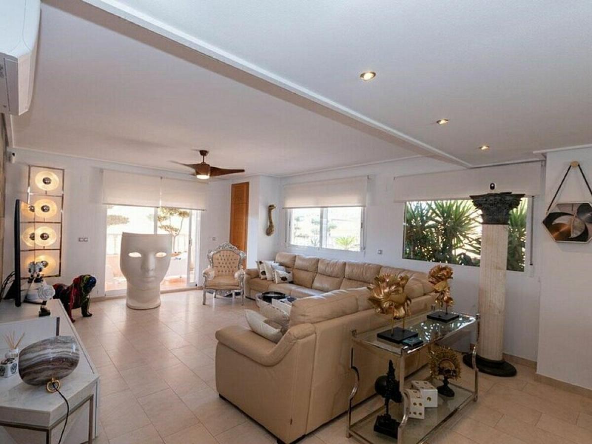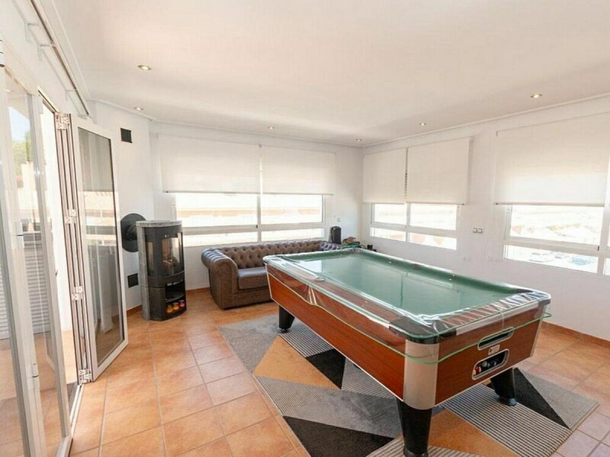 Luxurious, ready-to-move-in 170 m2 (110 m2 usable) 3-bed, 2-bath (optional 4th bed) 2nd-floor apartment in prestigious Los Dolses, Villamartin, with a sunny Southeast orientation. Features a 50 m2 open-plan living-dining room and kitchen, 60 m2 of terraces, a winter lounge with a gas stove, a 25 m2 billiard room, and a storage room. High-quality finishes include underfloor heating, AC, porcelain tiles, an armored door, and Climalit windows. Parking includes a garage and a designated space. Residents enjoy exceptional communal facilities: two pools (one heated with sauna/gym), children's pools, a playground, and green zones.Status: Alicante