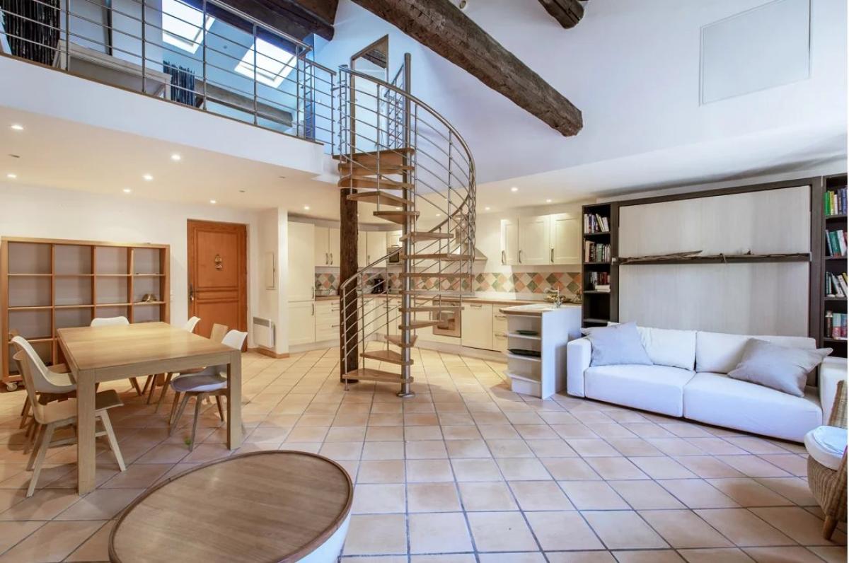 Diese wunderschone 100 m2 grosse Wohnung im Loftstil ist sehr charmant und befindet sich in der obersten Etage eines typischen Gebaudes in der Altstadt von Villefranche-sur-Mer. Sie besteht aus einem grossen Wohn-/Esszimmer mit offener, ausgestatteter Kuche und einem kleinen Wohnzimmer und einem grossen Schlafzimmer mit Duschbad auf dem Mezzanin. Es ist hell und ruhig und bietet ausserdem einen herrlichen Meerblick von den beiden grossen Velux-Fenstern.