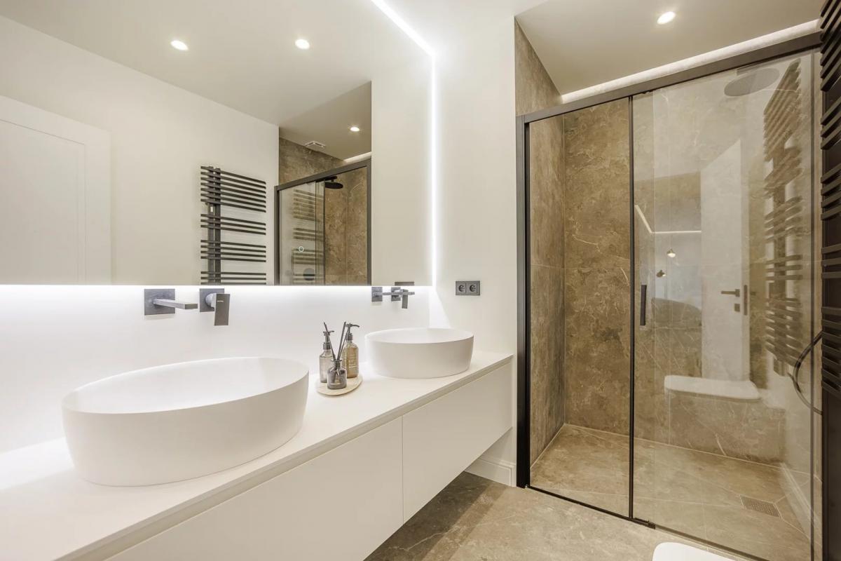 Comprising three rooms, it includes a bright and spacious living area with a fully equipped open kitchen, two bedrooms—each with its own bathroom or shower room. The entire space offers an atmosphere of refined elegance.