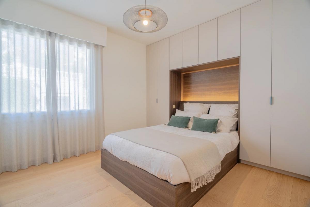 The apartment comprises a master bedroom with en-suite bathroom, as well as two additional welcoming bedrooms sharing a second bathroom. Fully renovated with high-quality finishes, the apartment is sold furnished and tastefully decorated - an elegant residence ready to move into. Numerous built-in cupboards and custom-made storage complete the property.