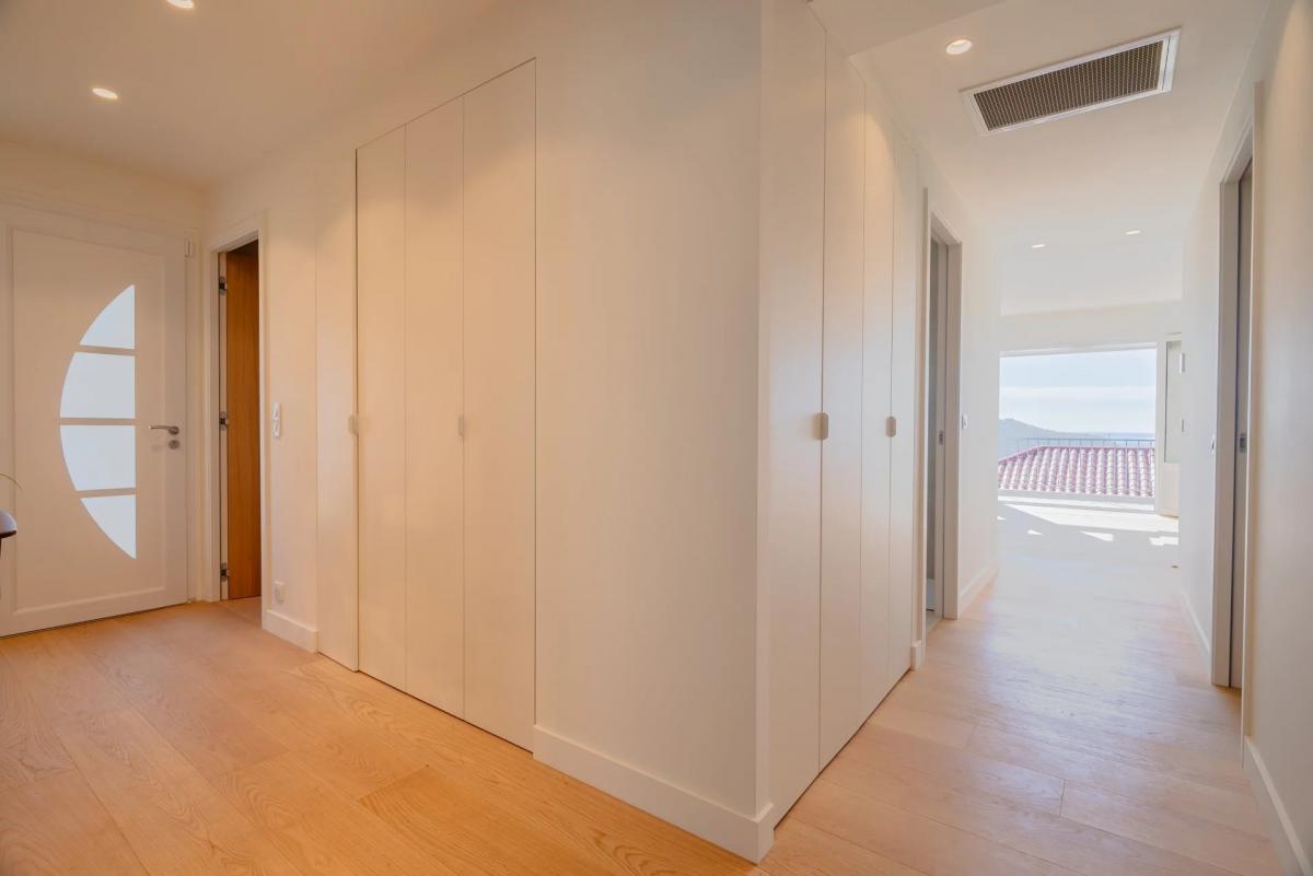 A staircase leads to a spectacular rooftop terrace, the same size as the apartment, partly designed as a garden and partly as a solarium: a true belvedere offering a 180-degree panoramic view over the sea, the Bay of Villefranche, and its surroundings.