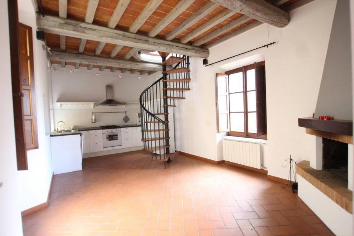 interior Description Located in the heart of Volterra's historic center, just meters from the main Piazza dei Priori, this charming apartment is situated on the first floor of a lovely historic condominium building, yet in excellent condition. Access to the apartment is through a corridor after the independent entrance from the private resede. Upon entering, the apartment opens into a spacious living room with a fireplace, ideal for relaxation and convivial moments, and a high-end, fully equipped kitchen. The open-plan dining area, integrated with the kitchen, features a beautiful fireplace, creating a cozy and refined atmosphere.