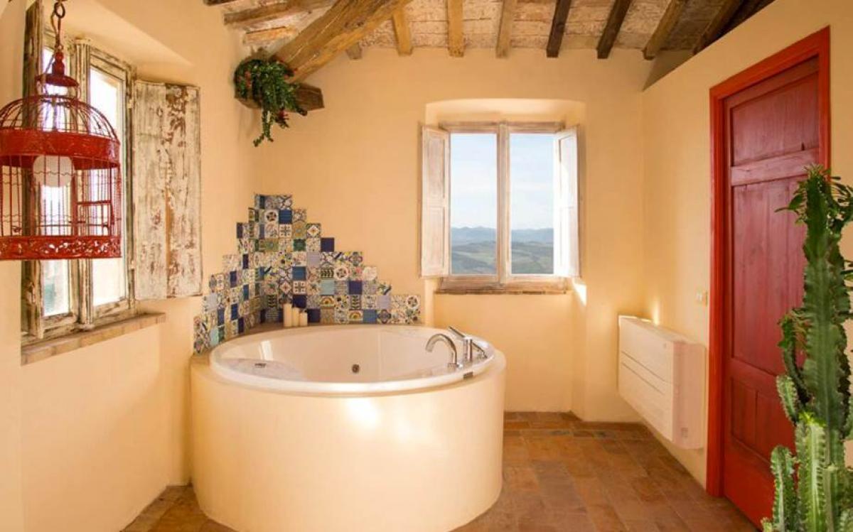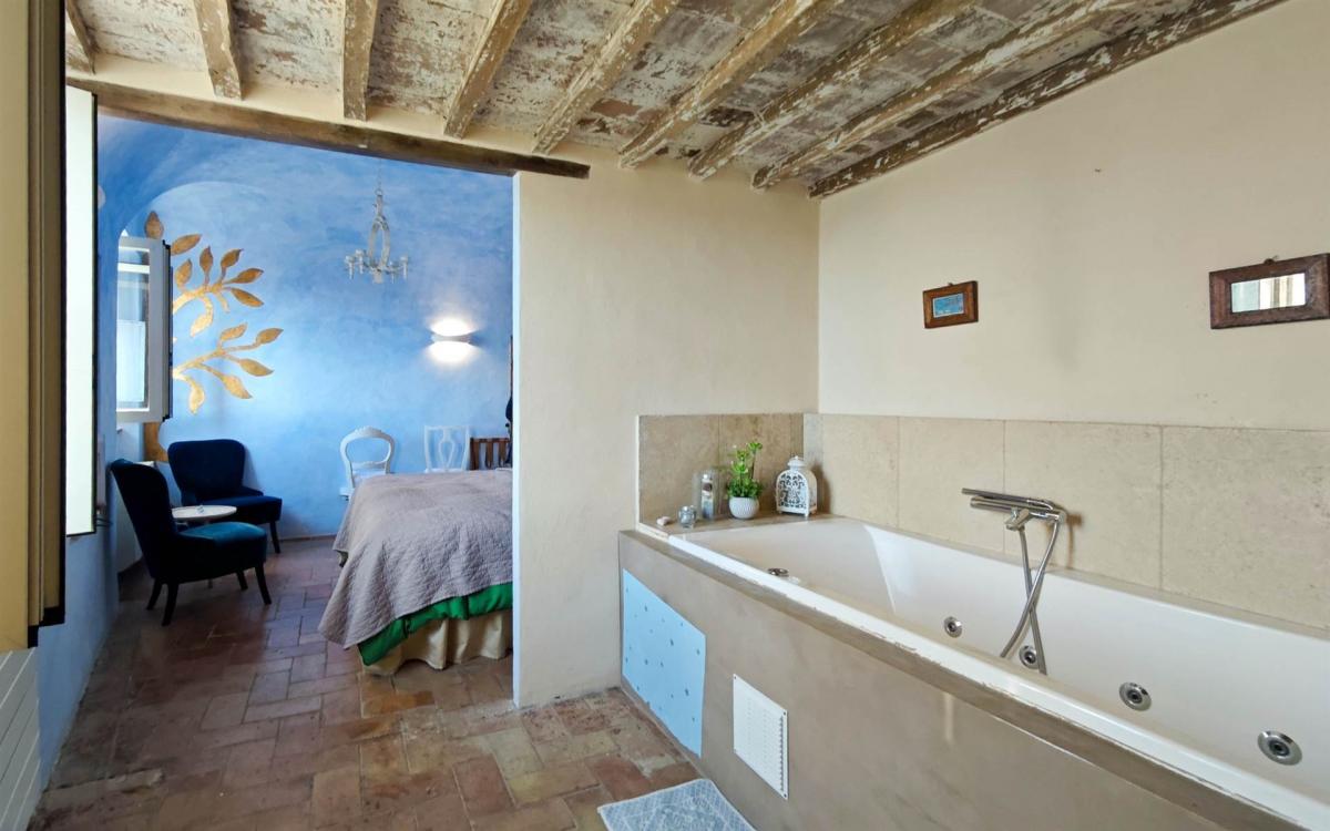 in the heart of an authentic Tuscan hamlet near Volterra, this 125 sqm apartment currently used as a boutique B&B offers three independent suites, each with private entrance, bathroom and whirlpool tub. The restoration preserved original architectural elements such as brick vaults and cross ceilings, creating elegant and welcoming interiors. On the ground floor is a 40 sqm suite created from a former stable, while the upper floor hosts two additional suites totaling 64 sqm. The 21 sqm kitchen, also with independent access, is equipped for breakfasts and light meals and opens onto a panoramic outdoor space. Each room is air-conditioned, features autonomous heating and comes fully furnished, suitable both for hospitality use and as an elegant private residence.