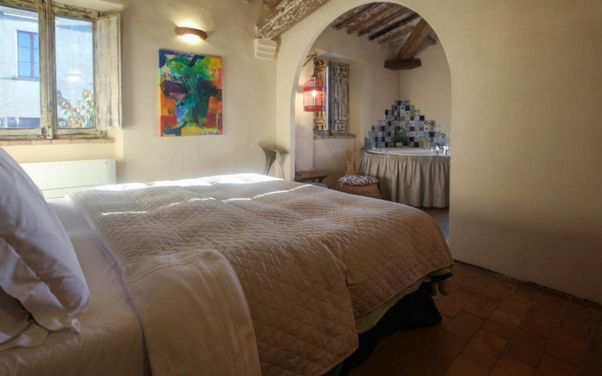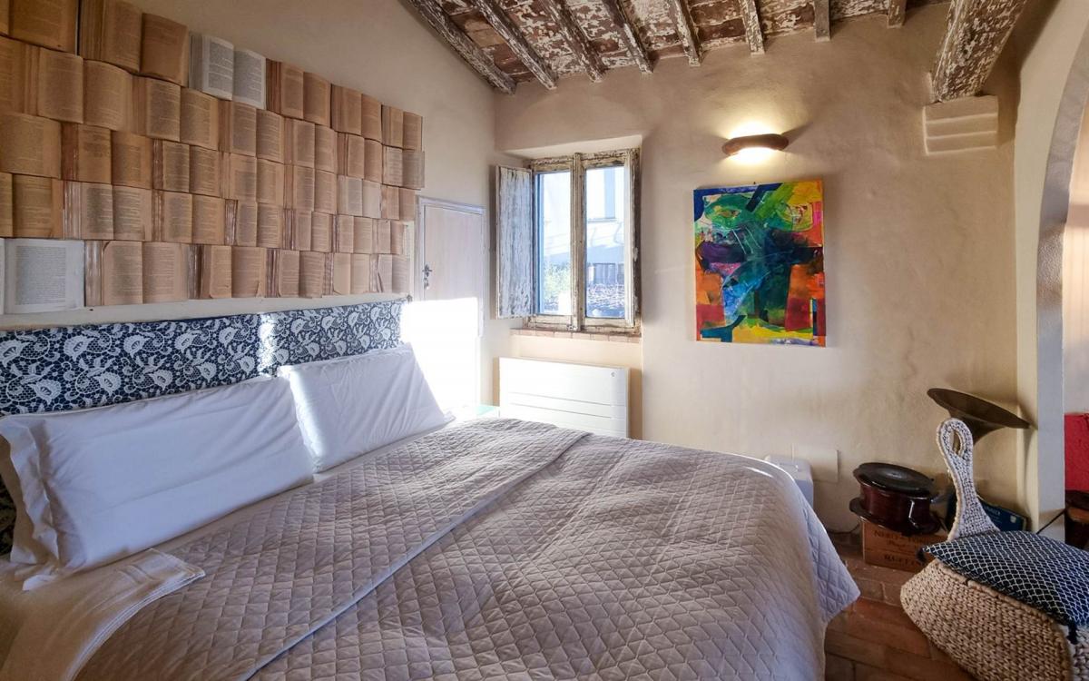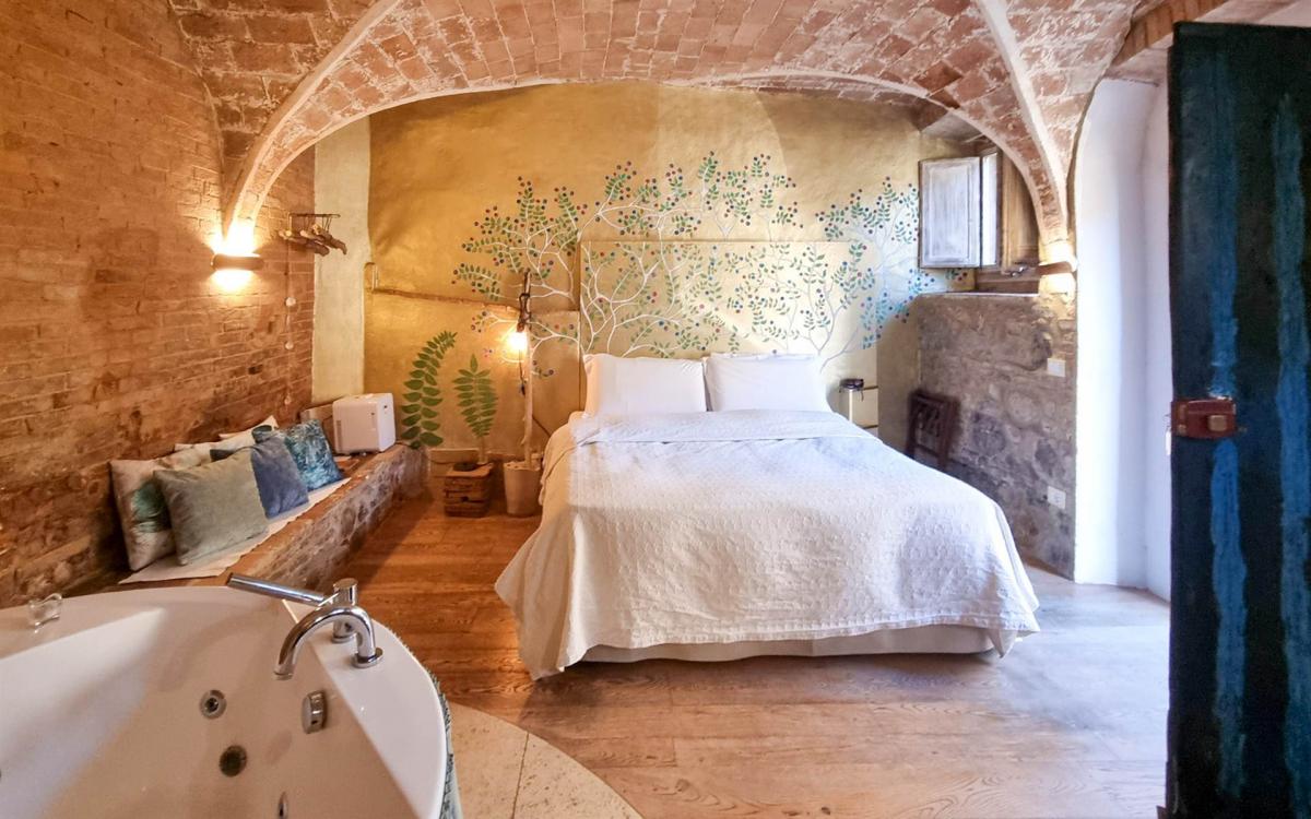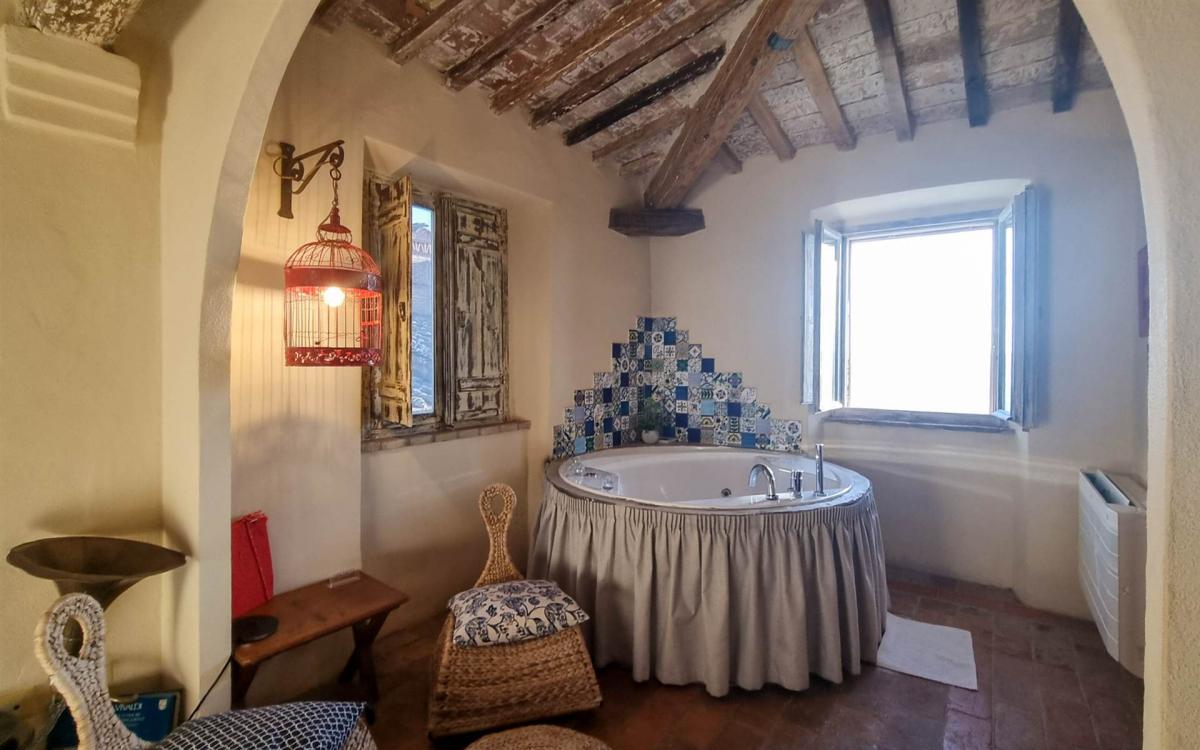 in the heart of an authentic Tuscan hamlet near Volterra, this 125 sqm apartment currently used as a boutique B&B offers three independent suites, each with private entrance, bathroom and whirlpool tub. The restoration preserved original architectural elements such as brick vaults and cross ceilings, creating elegant and welcoming interiors. On the ground floor is a 40 sqm suite created from a former stable, while the upper floor hosts two additional suites totaling 64 sqm. The 21 sqm kitchen, also with independent access, is equipped for breakfasts and light meals and opens onto a panoramic outdoor space. Each room is air-conditioned, features autonomous heating and comes fully furnished, suitable both for hospitality use and as an elegant private residence.