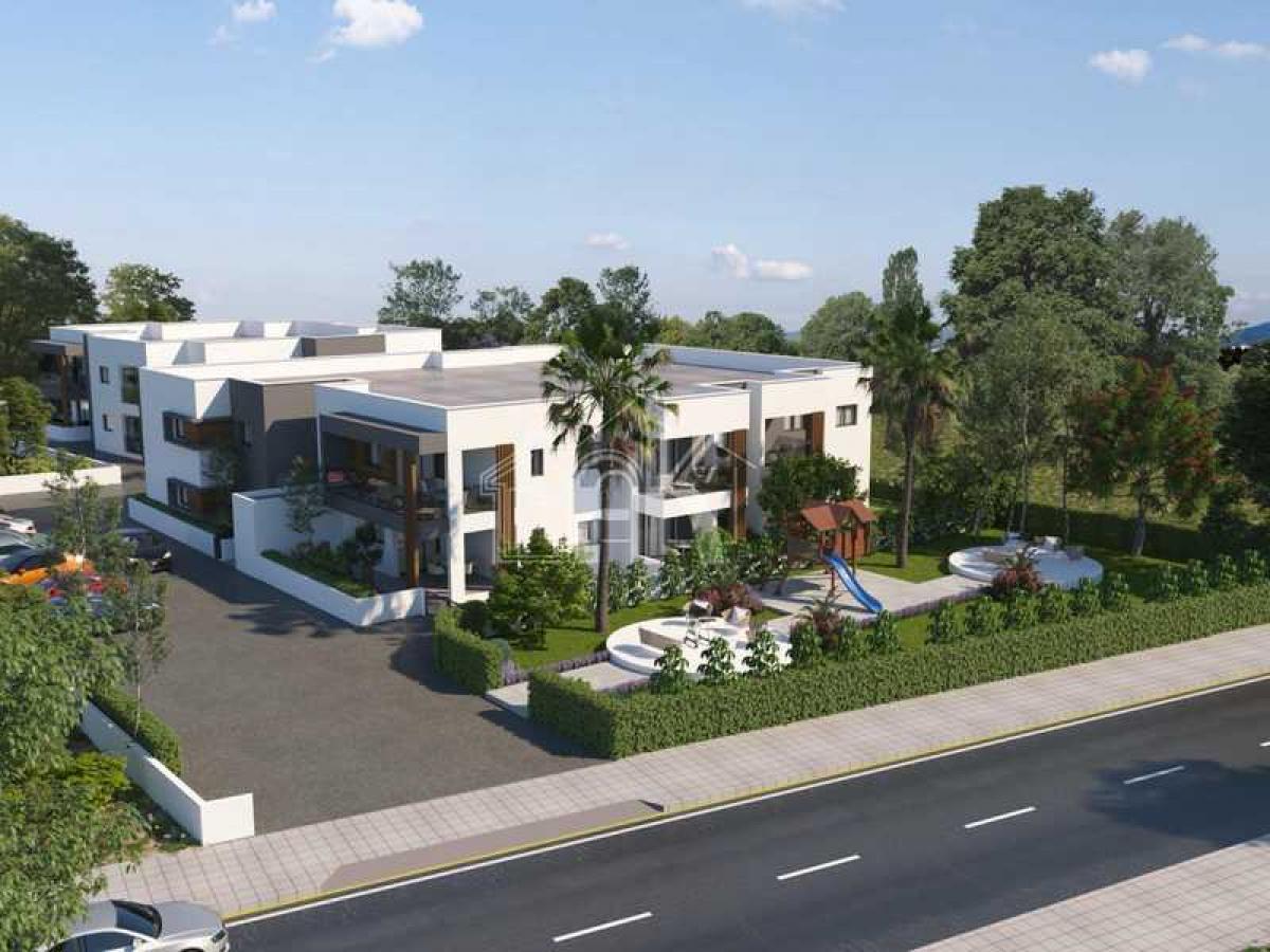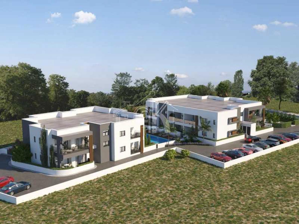 A 2-bedroom First Floor Apartment in Xylofagou, Larnaca. The Apartment is located in a fantastic location only 400m away from Saint George Church and Xylofagou's centre, 650m away from B' Primary School of Xylofagou, 1.3km away from the nearest highway exit, 8km drive away from Ayia Napa Marina, 15 minutes' drive to Larnaca city centre and the beautiful beaches of Ayia Napa, 20 minutes' drive to Larnaca International Airport, and just next to all amenities: Bakery, Supermarket, Shops, Pharmacies, Schools and Restaurants.The development consists of 2 blocks of apartments with communal swimming pool. Entering this beautiful apartment, you can find an open plan kitchen-living-dining room, that leads out through double-glazed sliding doors to the covered veranda, perfect for al fresco dining, a guest's toilet with en-suite shower facilities, and two bedrooms with built-in wardrobes. The master bedroom has en-suite shower facilities.