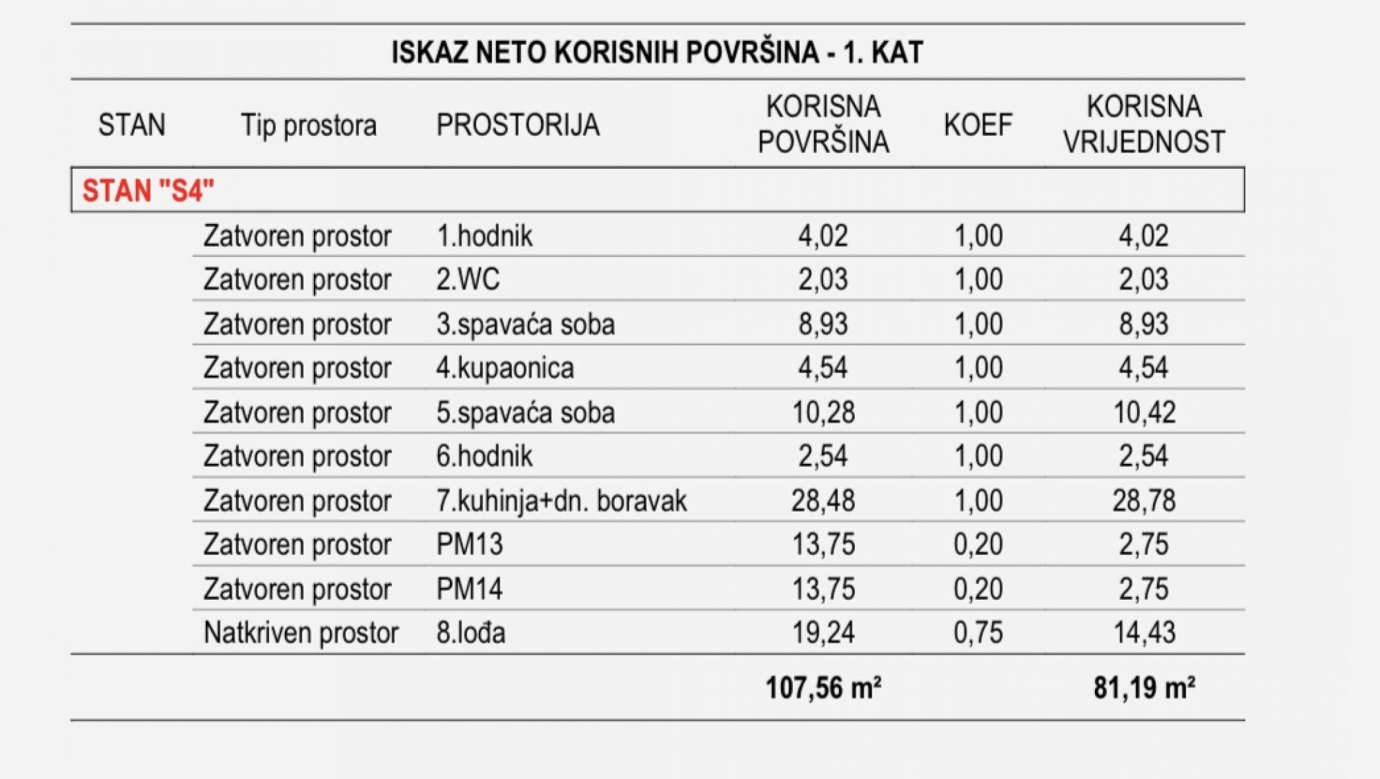Total usable area: 107.56 m²