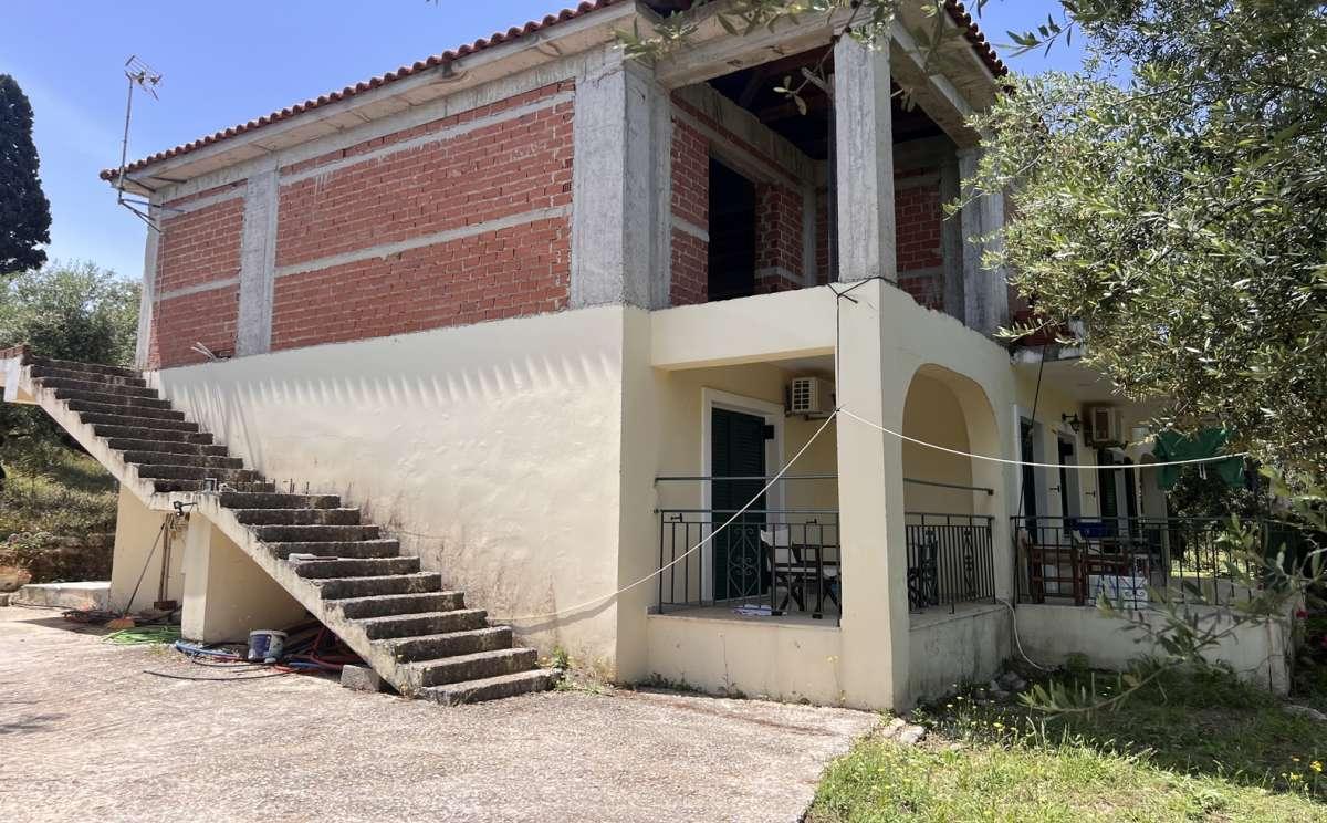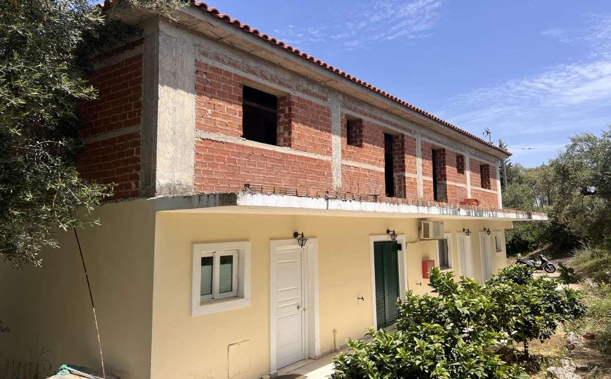 Unfinished house in Zakynthos with an area of 200sqm, 500 meters from the sea, in a tourist area, for sale. It's about a building that includes 4 studios, at the ground floor, while the first floor is in the masonry stage in order to be arranged as a residence or into 4 additional studios. The house is locates in a plot of 8.500sqms, with about 200 olive trees, inside it. The property has additional building. Distances: 500 meters from the sea, 10km from the city, 7km from the airport.Price: €450.000