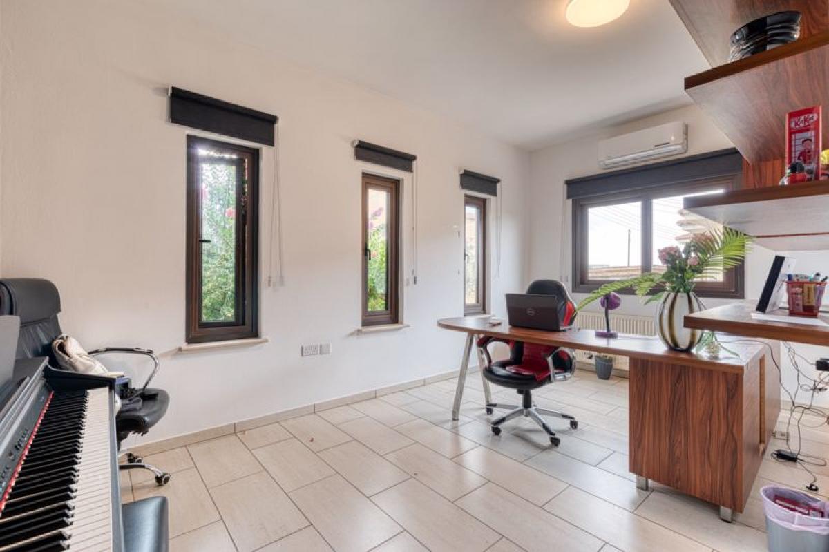 Four Bedroom Detached Bungalow For Sale in Dherynia with Land DeedsThis well presented property is located in the residential area of Dherynia, just 10 minutes from the main town of Paralimni. Upon entering the property you will find yourself in a spacious reception area, which provides additional informal seating, with an open plan living, dining, kitchen and separate utility room. To the left of the reception you will find a double bedroom which is currently being used as an office, with a further three bedrooms and family bathroom down a small hallway. The property sits on a large plot with spacious verandas to the side and rear. In addition to the bungalow, there is also a basement which has been converted into a self contained one bedroom apartment.
