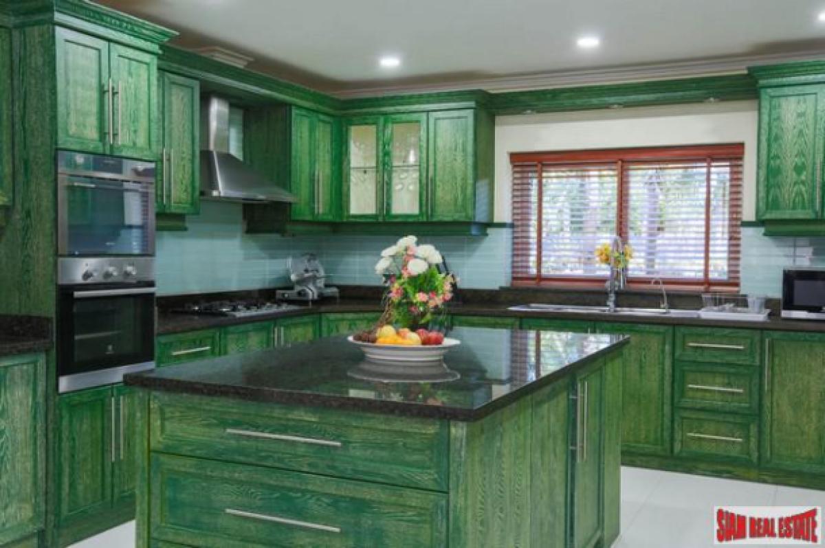 This massive luxury private estate is located five minutes from the popular Maprachan Lake. It sits on a one rai (1,600 sqm) land plot.Immaculately decorated and maintained this seven bedroom, eight bath house is a perfect family retreat. Indoors the property boasts of seven ensuite bedrooms, guest bath, office, indoor two person jacuzzi, snooker room and elevator. The fully equipped western kitchen is colorful and has lots of cupboards and an island style work station. A 12-person dining table is adjacent to the kitchen making entertaining easy and fun.