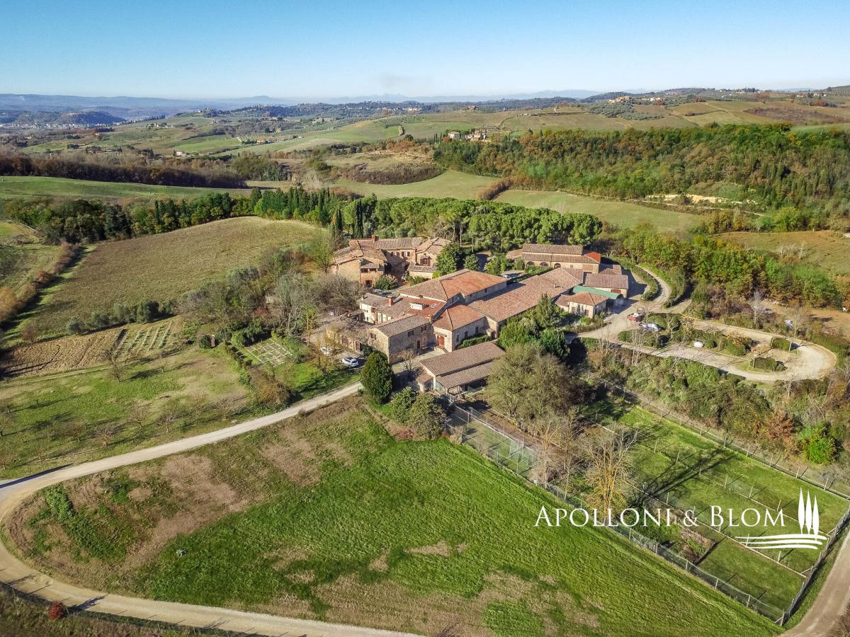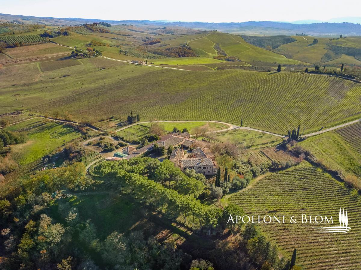 Stone-built thousand-year-old hamlet with 335-acre organic wine farm and winery with cellar for sale in Castellina in Chianti, Siena. Stone-built thousand-year-old hamlet with 335-acre organic wine farm and winery with cellar for sale in Castellina in Chianti, Siena. Perched atop the undulating hills of Chianti Classico, this thousand-year-old stone hamlet offers a rare convergence of provenance, scale, and viticultural excellence. Located in Castellina in Chianti, one of Tuscany’s most esteemed wine territories, the estate spans 335 acres (135.6 hectares), encompassing vineyards, olive groves, woodlands, and an architecturally refined wine production facility. Eighty-two acres (33 hectares) are under vine, planted predominantly with Sangiovese alongside select international varietals including Merlot, Petit Verdot, Cabernet Sauvignon, Sauvignon Blanc, and Chardonnay. For over four decades, the current owners have devoted themselves to elevating the estate’s enological identity—restructuring the vineyards, implementing modern winemaking techniques, and attaining full organic certification in 2009. The estate now produces approximately 75,000 bottles annually, with 75 percent of its output distributed to established markets abroad. Equally distinguished is the production of DOP-certified organic extra virgin olive oil, crafted from Correggiolo, Moraiolo, and Leccino olives. Each element of the estate contributes to a sustainable agricultural ecosystem rooted in authenticity and long-term stewardship. The architectural heart of the estate is an eleventh-century hamlet that has been meticulously reimagined as a refined rural retreat. The cluster of historic stone buildings surrounds a central courtyard and includes a series of guest residences and a private villa. Exteriors are clad in natural stone with arched loggias and clay rooflines that blend seamlessly with the landscape. Interiors preserve their Tuscan character—terracotta flooring, hand-hewn beams, exposed masonry, and traditional fireplaces—offering an atmosphere of rustic sophistication and understated grandeur. The estate’s wine production facility extends over 22,356 square feet (2,077 square meters) and is an architectural statement in itself. High vaulted ceilings, rhythmic brick colonnades, and traditional arches frame a space equipped with cutting-edge enological systems. Adjacent structures include offices, tasting salons, and storage areas—all integral to the estate’s operational rhythm. In total, the built area spans approximately 51,688 square feet (4,802 square meters). This includes a 13,218-square-foot (1,228-square-meter) country mansion, the aforementioned winery, and an additional 16,113 square feet (1,497 square meters) of ancillary structures such as guest apartments, agricultural outbuildings, and administrative spaces. This is a property of remarkable integrity and cultural depth—a working wine estate that honors its medieval origins while embracing the future of high-quality organic viticulture. It invites not only investment, but immersion in the very essence of Tuscany’s winemaking heritage. Type: 135.6 ha/335 acres 11th-century Chianti Classico wine estate with ancient borgo totaling 4802 sq m/51688 sq ft including a 1228 sq m/13218 sq ft country mansion; 2077 sq m/22356 sq ft fully equipped wine cellar facility; approx. 1497 sq m/16113.5 sq ft of farm and borgo buildings featuring offices, tasting rooms, guest apartments, and warehouses Year of construction: 1000 Year of restoration: 2000s Land: 135.6 ha/335 acres with organic cultivation, including 33.3 ha/7 acres of vineyards, 4,7 ha/11.6 acres of olive groves 47,4 ha/117.12 arable land (suitable for new vines), and 48,2 ha/119.1 acres of forest Utilities: Fixed telephone network: available Internet/Wi-Fi: available Heating: LPG Water: mains city supply Electricity: available Water waste: Imhoff tank Distance from services: 1,5 km Distance from the main airports: Florence 50 km, Pisa 55 km Gravel road: 200 m, the access alley Details on wine production - Current vineyard surface: 33.3 ha/81 acres (Chianti Classico DOCG 15.3 ha/7 acres, Toscana IGT 18 ha/7acres) - Varieties: Sangiovese, Merlot, Petit Verdot, Cabernet Sauvignon, Sauvignon Blanc e Chardonnay - Average altitude: 250 – 550 m asl - Planting distance: 2.50 × 0.70 m | 2.50 × 0.80 m | 2.80 × 1.00 m | 2.90 × 1.00 m - Training: pruned-spur cordon (5,270 vines /ha) - Yearly production: (0.75 lt-size bottles) Chianti Classico DOCG 35.000/45.000; Chianti Classico DOCG Gran Selezione 9.000/11.000, Toscana Rosso IGT 21.000 and Toscana Bianco IGT 4.000 - Wine produced: Chianti Classico DOCG, Chianti Classico DOCG Gran Selezione, Toscana Rosso IGT and Toscana Bianco IGT Details on extra-virgin olive oil production: - Olive grove surface: 4.7 ha/11 acres including 1.3 ha/3,2 acres DOP Chianti Classico and 3.4 ha/8,4 acres DOP Chianti Colli Senesi - Cultivar: Correggiolo, Moraiolo and Leccino - Annual production: up to 2,100 kg Layout: Manor villa, 1228 sq m: Ground Floor: living room with fireplace, sitting room, 2 studies, ironing room and bathroom Apartment: living room, kitchen, bedroom with en suite bathroom Studio with fireplace, garage, direct sale First Floor: lounge, living room, kitchen, bathroom, 5 bedrooms, 3 bathrooms Apartment: living room with kitchen, 2 bedrooms with en suite bathroom Second building: Ground Floor: cellar First Floor: apartment: living room, dining room, kitchen, 3 bedrooms, bathroom; vinsantaia; tasting room- garden
