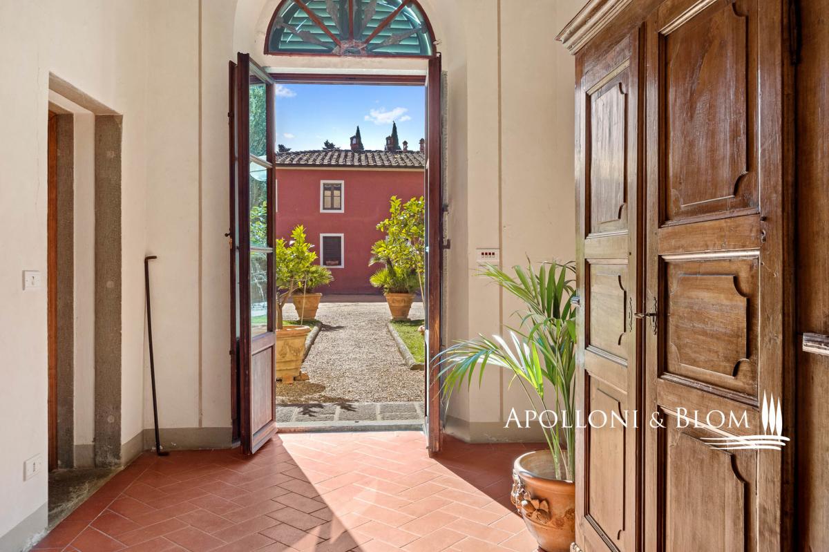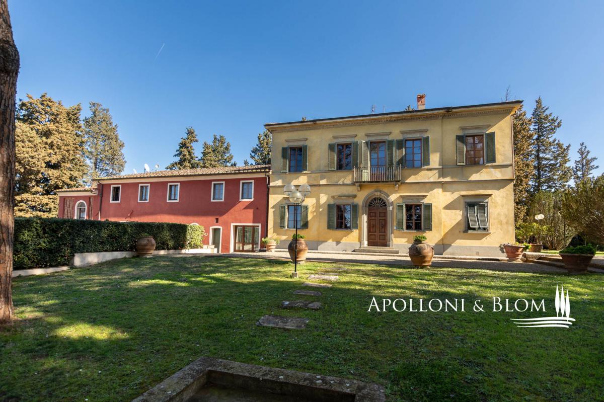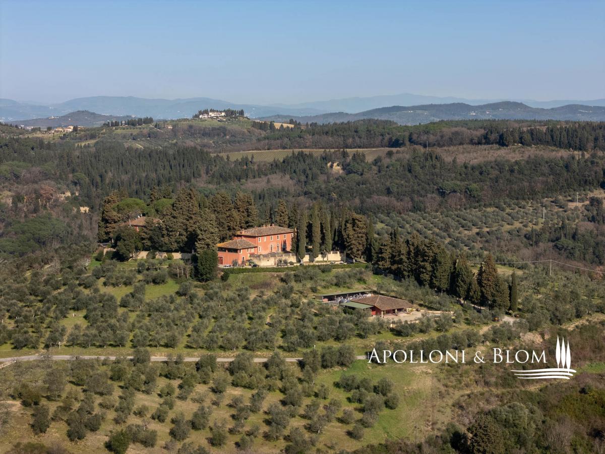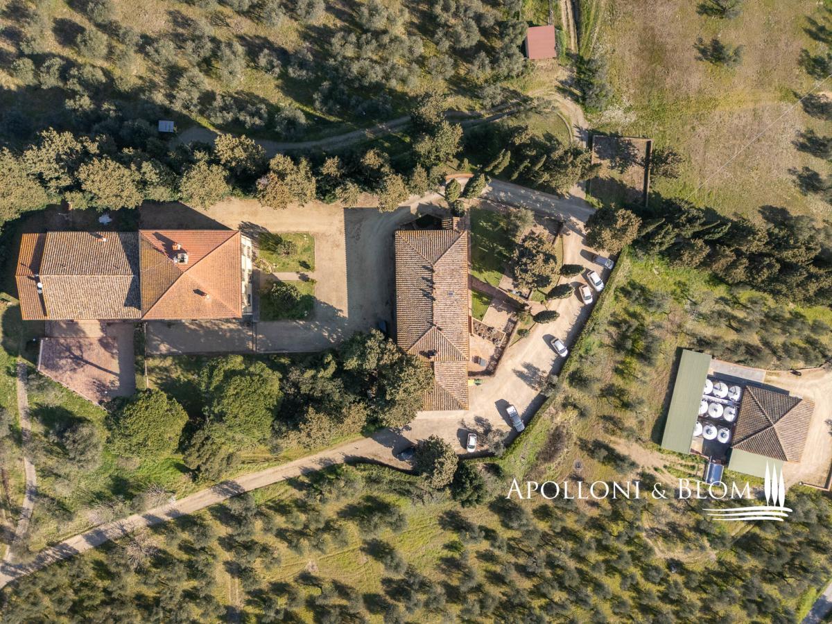 Authentic 124-hectare estate featuring a 1500s manor villa paired with rustic style farmhouses, a wine making facility, for sale near Florence. Set in a charming landscape in the heart of Tuscany, in the picturesque hills of Chianti, just a short distance from Florence, the estate spans 124 hectares and boasts a centuries-old agricultural tradition, focused on certified organic cultivation of high-quality grape varieties and olive groves. The main residence is a 16th-century villa of 600 square meters, embodying the elegance of Tuscan classicism, with refined, spacious living areas and five bedrooms. Enhancing the complex, there are two recently renovated former farmhouses and a barn, which house eight guest apartments of different sizes, totaling twenty bedrooms. Each space is a tribute to traditional Tuscan rustic style, with wooden beam ceilings and terracotta floors that create a warm and authentic atmosphere. Currently under renovation, a third farmhouse of 780 square meters located at 700 meters from the manor villa, offers further development potential, ideal for creating an exclusive villa or for the conversion into agritourism apartments or vacation homes, thereby increasing the estate’s hospitality capacity. The vineyard spans 28 hectares and is planted with indigenous varieties such as Sangiovese, Canaiolo, Ciliegiolo, Colorino, Trebbiano, as well as international varieties like Cabernet and Merlot, producing wines of exceptional quality, including Chianti Colli Fiorentini DOCG, IGT Toscana SuperTuscans, and Vinsanto DOC. Complementing the wine production, 26 hectares of olive groves complete the picture of this outstanding estate. The winery, an imposing space of some 1400 square meters, is fully equipped for winemaking, reinforcing the value of this property as one of the most prestigious in the region. A unique opportunity for those who wish to own a piece of Tuscan paradise, rich in history and tradition, with great potential for future development. PROPERTY Ref: FIR3214 Location: Montelupo Fiorentino, Province: Firenze, Region: Tuscany Type: 124-hectare (306 acres) farm including 1994 sq m/21463 sq ft of residential buildings featuring an historic villa and farmhouses paired with cellars and agricultural warehouses for an additional 1400 sq m/15069 sq ft Year of construction: 1500 villa, 1800 farm buildings Land: 124 hectares/7.5 acres including garden grounds, private access driveway, areas designated for parking and maneuvering spaces, agricultural land including 28 ha/69 acres of vineyards and 26 ha/64 acres of olive groves Parking: outdoor parking facility Utilities: Fixed telephone network: available Internet/Wi-Fi: available Heating: LPG Water: mains city supply + private wells + lake for irrigation use Electricity: available Waterwaste: Imhoff tank Air conditioning in all rooms Barbecue area and wood oven Distance from services: 5km/3 miles Distance from the main airports: Florence 28Km/17 miles, Pisa 58km/36 miles DETAILS ON WINE PRODUCTION - Current vineyard surface: 28 ha/69 acres - Appellation: Chianti Colli Fiorentini DOCG, Toscana IGT- Varieties: Sangiovese (19 ha), Merlot (2 ha), Canaiolo (1 ha), Ciliegiolo (1,5 ha), Cabernet (1 ha), Colorino (1,5 ha), Trebbiano (2 ha) - Average altitude: 150 – 250 m asl - Planting distance: 2,50×0,70 m | 2,50×0,80 m | 2,80×1,00m | 2,90×1,00 m - Years of planting: 2 ha/5 acres planted in 2024 - Training: pruned-spur cordon (5,270 vines/ha) - Wine produced: Chianti Colli Fiorentini DOCG, Toscana IGT, Vinsanto del Chianti DOC DETAILS ON EVO OIL PRODUCTION - Surface area: 26 ha/64 acres - Annual production: between 3000 to 8000 litres Layout: Manor Villa of 400 sq m/4305 sq ft with 5 bedrooms, 6 bathrooms + laundry room of 100 sq m/1075 sq ft Country house 1: two-story former farmhouse of 226 sq m/2432 sq ft including: Apartment 1 – Ground Floor, 44 sq m/473 sq ft with 2 bedrooms, 1 bathrooms Apartment 2 – First Floor, 114 sq m/1227 sq ft with 2 bedrooms, 2 bathrooms Apartment 3 – First Floor, 68 sq m/731 sq ft with 2 bedrooms, 2 bathrooms and storage room on the ground floor Barn – 158 sq m/1700 sq ft on two levels 3 bedrooms, 2 bathrooms Country house 2: in front of the villa, 320 sq m/3444 sq ft including Apartment 1 – 57 sq m/613 sq ft 2 bedrooms, 1 bathroom Apartment 2 – 102 sq m/1097 sq ft 3 bedrooms, 2 bathrooms Apartment 3 – 69 sq m/742 sq ft 2 bedrooms, 2 bathrooms Apartment 4 – 92 sq m/990 sq ft 3 bedrooms, 2 bathrooms Farmhouse under renovation of 780 sq m/8395 sq ft on two levels Winemaking facility building with cellars and annexes of approximately 1400 sq m/3459 sq ft- bathroom
