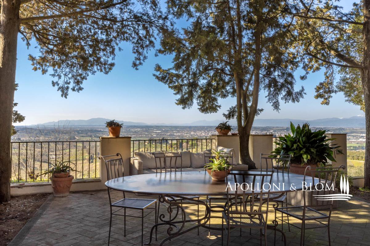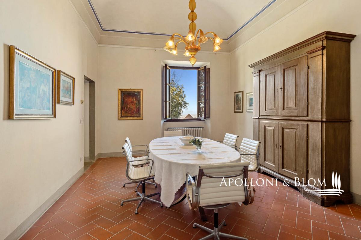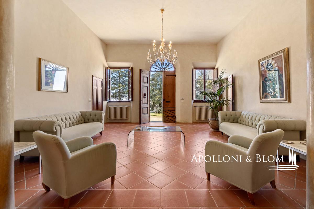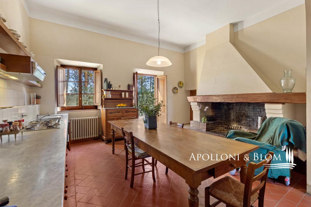 Authentic 124-hectare estate featuring a 1500s manor villa paired with rustic style farmhouses, a wine making facility, for sale near Florence. Set in a charming landscape in the heart of Tuscany, in the picturesque hills of Chianti, just a short distance from Florence, the estate spans 124 hectares and boasts a centuries-old agricultural tradition, focused on certified organic cultivation of high-quality grape varieties and olive groves. The main residence is a 16th-century villa of 600 square meters, embodying the elegance of Tuscan classicism, with refined, spacious living areas and five bedrooms. Enhancing the complex, there are two recently renovated former farmhouses and a barn, which house eight guest apartments of different sizes, totaling twenty bedrooms. Each space is a tribute to traditional Tuscan rustic style, with wooden beam ceilings and terracotta floors that create a warm and authentic atmosphere. Currently under renovation, a third farmhouse of 780 square meters located at 700 meters from the manor villa, offers further development potential, ideal for creating an exclusive villa or for the conversion into agritourism apartments or vacation homes, thereby increasing the estate’s hospitality capacity. The vineyard spans 28 hectares and is planted with indigenous varieties such as Sangiovese, Canaiolo, Ciliegiolo, Colorino, Trebbiano, as well as international varieties like Cabernet and Merlot, producing wines of exceptional quality, including Chianti Colli Fiorentini DOCG, IGT Toscana SuperTuscans, and Vinsanto DOC. Complementing the wine production, 26 hectares of olive groves complete the picture of this outstanding estate. The winery, an imposing space of some 1400 square meters, is fully equipped for winemaking, reinforcing the value of this property as one of the most prestigious in the region. A unique opportunity for those who wish to own a piece of Tuscan paradise, rich in history and tradition, with great potential for future development. PROPERTY Ref: FIR3214 Location: Montelupo Fiorentino, Province: Firenze, Region: Tuscany Type: 124-hectare (306 acres) farm including 1994 sq m/21463 sq ft of residential buildings featuring an historic villa and farmhouses paired with cellars and agricultural warehouses for an additional 1400 sq m/15069 sq ft Year of construction: 1500 villa, 1800 farm buildings Land: 124 hectares/7.5 acres including garden grounds, private access driveway, areas designated for parking and maneuvering spaces, agricultural land including 28 ha/69 acres of vineyards and 26 ha/64 acres of olive groves Parking: outdoor parking facility Utilities: Fixed telephone network: available Internet/Wi-Fi: available Heating: LPG Water: mains city supply + private wells + lake for irrigation use Electricity: available Waterwaste: Imhoff tank Air conditioning in all rooms Barbecue area and wood oven Distance from services: 5km/3 miles Distance from the main airports: Florence 28Km/17 miles, Pisa 58km/36 miles DETAILS ON WINE PRODUCTION - Current vineyard surface: 28 ha/69 acres - Appellation: Chianti Colli Fiorentini DOCG, Toscana IGT- Varieties: Sangiovese (19 ha), Merlot (2 ha), Canaiolo (1 ha), Ciliegiolo (1,5 ha), Cabernet (1 ha), Colorino (1,5 ha), Trebbiano (2 ha) - Average altitude: 150 – 250 m asl - Planting distance: 2,50×0,70 m | 2,50×0,80 m | 2,80×1,00m | 2,90×1,00 m - Years of planting: 2 ha/5 acres planted in 2024 - Training: pruned-spur cordon (5,270 vines/ha) - Wine produced: Chianti Colli Fiorentini DOCG, Toscana IGT, Vinsanto del Chianti DOC DETAILS ON EVO OIL PRODUCTION - Surface area: 26 ha/64 acres - Annual production: between 3000 to 8000 litres Layout: Manor Villa of 400 sq m/4305 sq ft with 5 bedrooms, 6 bathrooms + laundry room of 100 sq m/1075 sq ft Country house 1: two-story former farmhouse of 226 sq m/2432 sq ft including: Apartment 1 – Ground Floor, 44 sq m/473 sq ft with 2 bedrooms, 1 bathrooms Apartment 2 – First Floor, 114 sq m/1227 sq ft with 2 bedrooms, 2 bathrooms Apartment 3 – First Floor, 68 sq m/731 sq ft with 2 bedrooms, 2 bathrooms and storage room on the ground floor Barn – 158 sq m/1700 sq ft on two levels 3 bedrooms, 2 bathrooms Country house 2: in front of the villa, 320 sq m/3444 sq ft including Apartment 1 – 57 sq m/613 sq ft 2 bedrooms, 1 bathroom Apartment 2 – 102 sq m/1097 sq ft 3 bedrooms, 2 bathrooms Apartment 3 – 69 sq m/742 sq ft 2 bedrooms, 2 bathrooms Apartment 4 – 92 sq m/990 sq ft 3 bedrooms, 2 bathrooms Farmhouse under renovation of 780 sq m/8395 sq ft on two levels Winemaking facility building with cellars and annexes of approximately 1400 sq m/3459 sq ft- bathroom