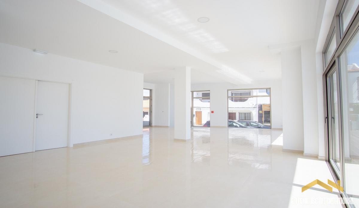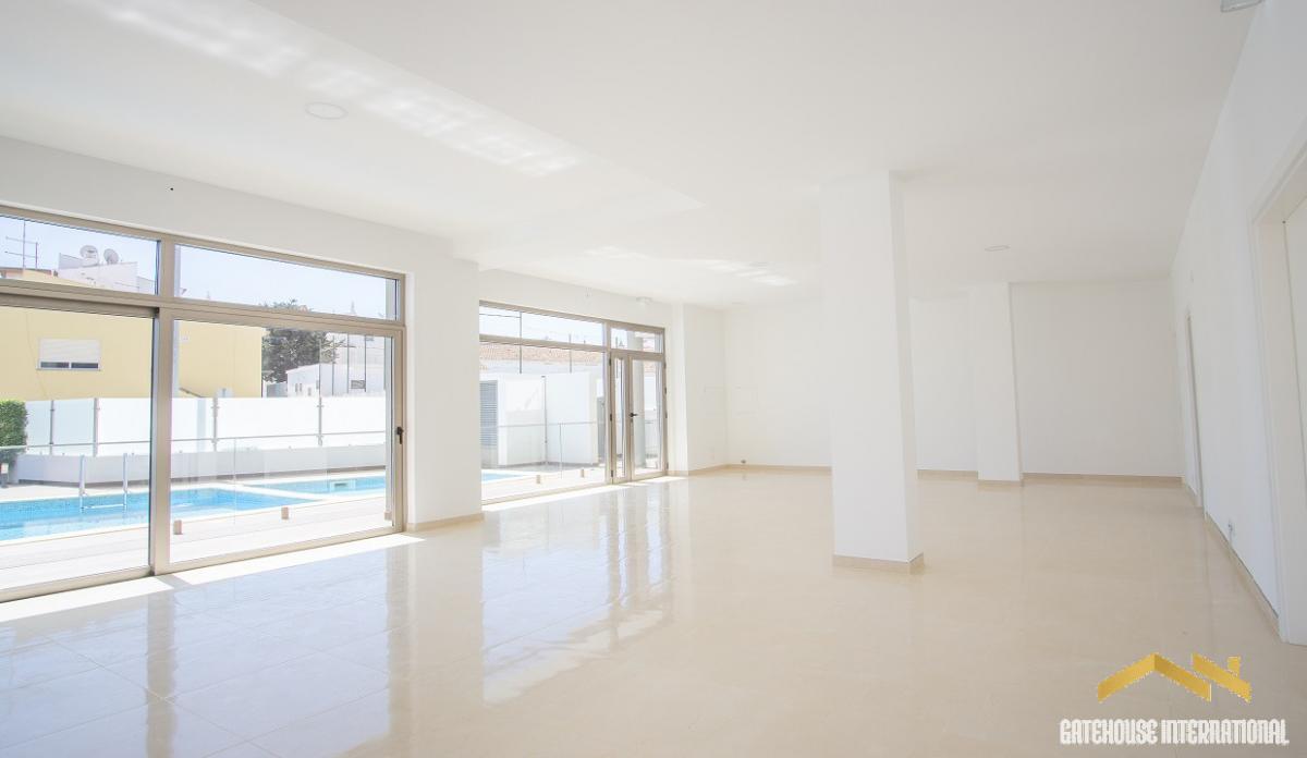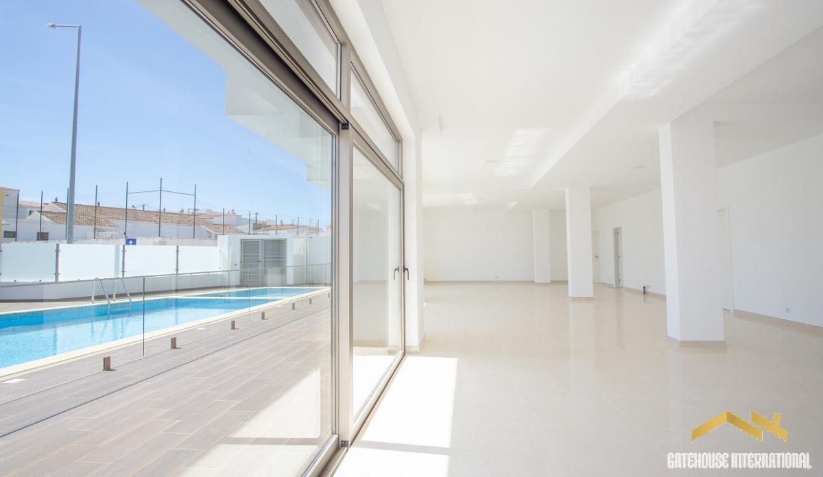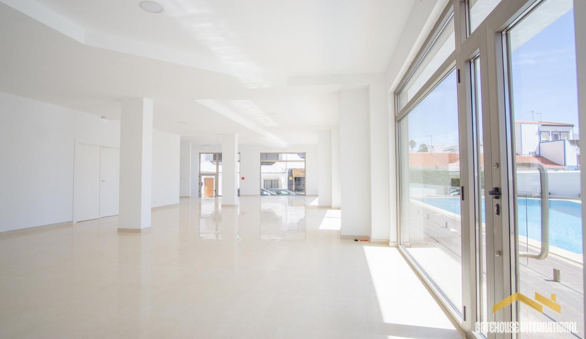Commercial Unit For Sale in Burgau Algarve - this 335m2 commercial ground floor unit plus a basement area is an ideal location for a mini supermarket, a cafe restaurant or a boutique shop with 5 designated parking spaces also. The unit has an entrance, a visitors toilet, a large open space with windows overlooking a pool and terraces, a large basement area with a visitors toilet. There are 5 private parking spaces. The image gallery shows CGi's as it could look as a cafe/restaurant or a mini supermarket.