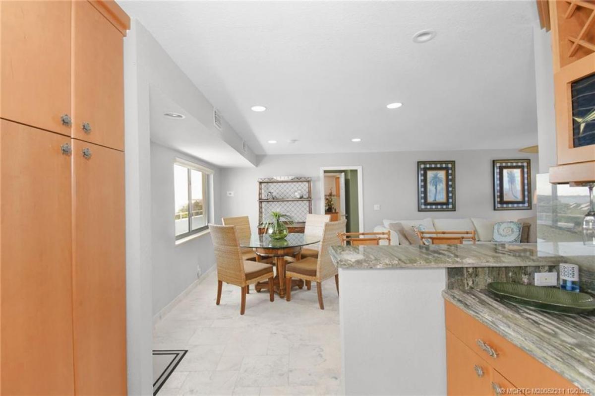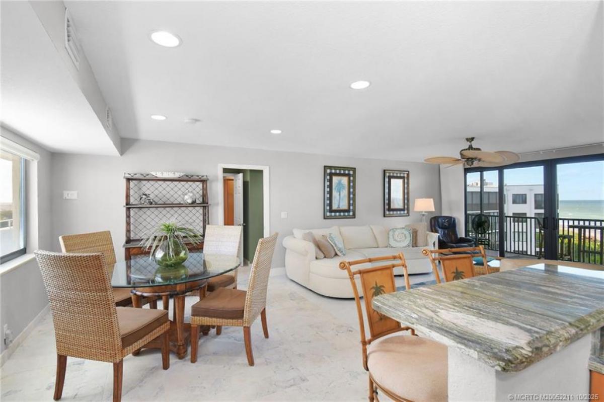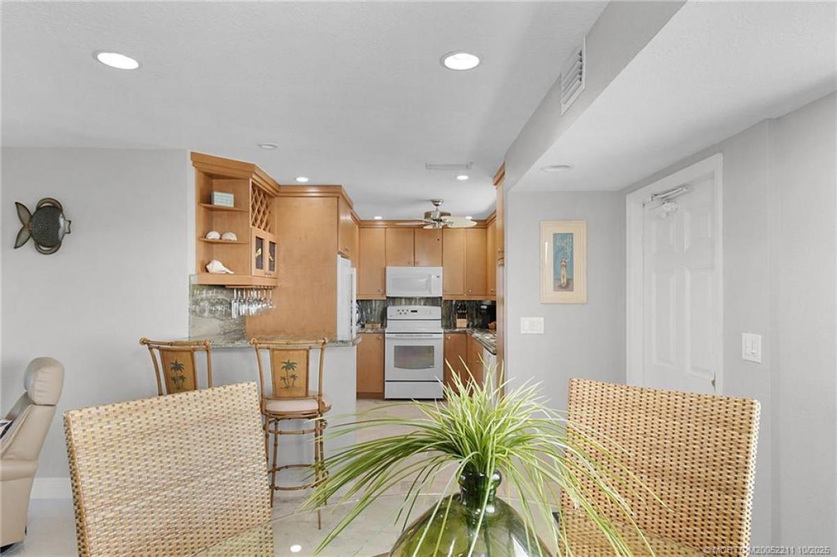 Experiencе breаthtakіng watеrfrοnt vіstas, stretching frοm the Ιndian River to the pristine shores of the Atlantic Ocean, all within steps of this exquisite condominium. The interior boasts a meticulously designed kitchen, featuring elegant granite countertops, abundant storage, and captivating river views. The master suite offers a luxurious king-size bed, a television, a spacious walk-in closet with ample shelving and hanging space, and a stylish step-in shower. Each room seamlessly transitions to a generous, covered balcony. Residents of the Ocean View Condo complex enjoy exclusive access to a private beach, two swimming pools, a tennis court, and a fishing pier on the river. Conveniently located, the complex is a short distance from the vibrant downtown areas of Stuart and Jensen Beach. Seasonal rentals require a minimum stay of 90 days, with a 30-day minimum during the off-season.