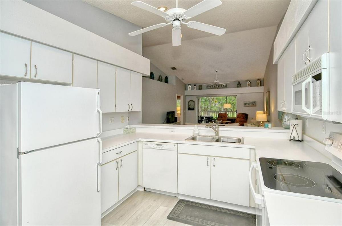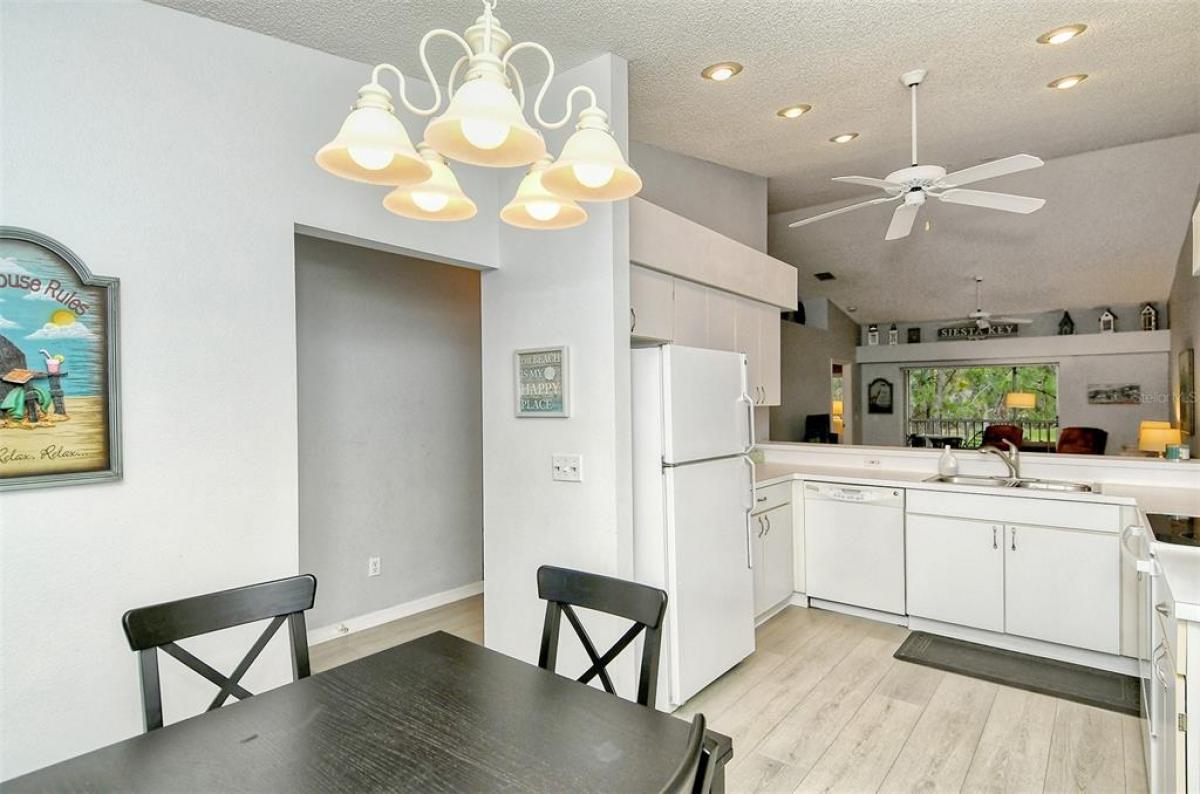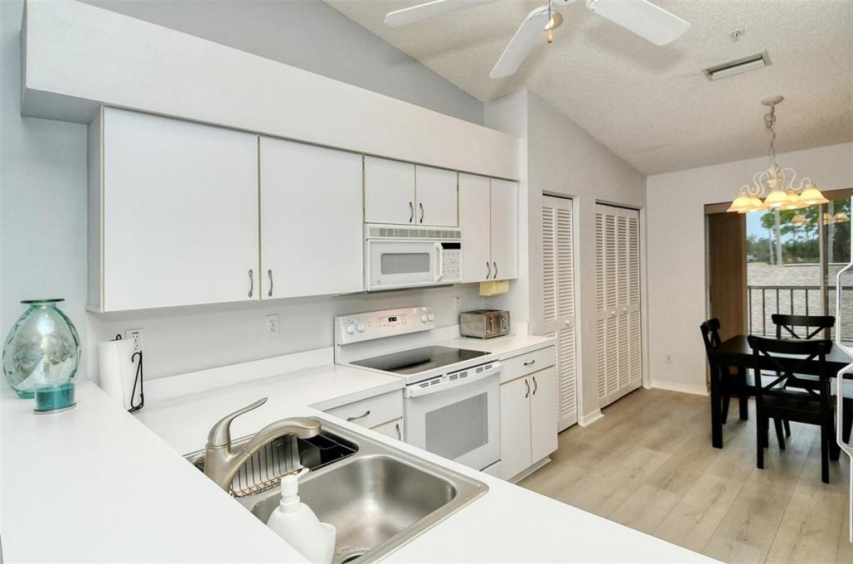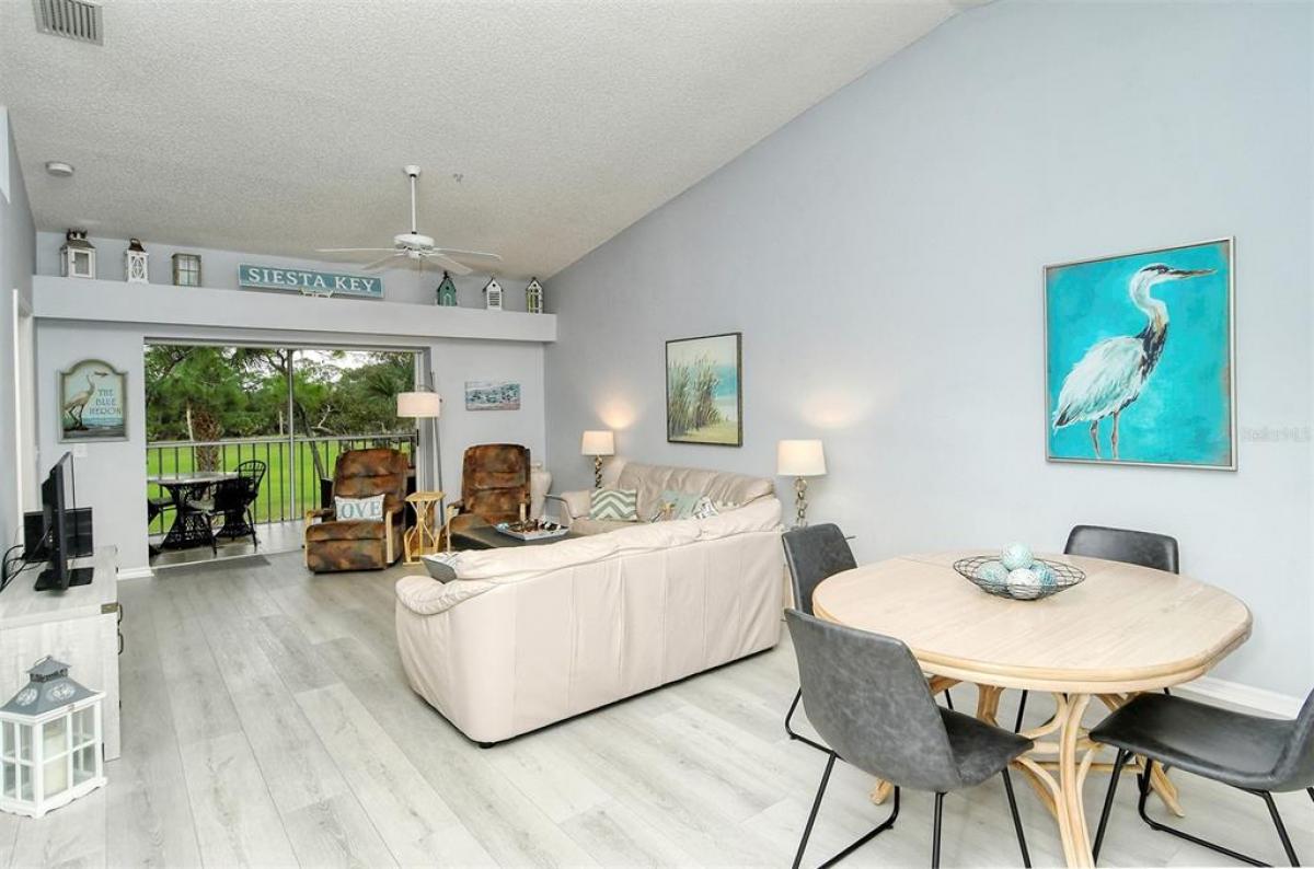 RENTED NOV. 2023 & JAN., FEB., MARCH 2024. Exceptional vacation condo on the second floor, 2 bedrooms, two baths, King in master suite, Queen plus trundle bed in the guest room. All new vinyl plank flooring throughout. Condo is comfortably furnished, there is internet access, flat-screen TVs, the interior is freshly painted and bright and cheerful. There is a golf course view from the screened lanai. The heated pool is a short walk from the condo. You'll find everything you need for a few months in the sunshine. Golf membership transfers for a fee (check with th administration office for fees) if desired. The complex is gated and boasts an impressive clubhouse with fine and casual dining, a fitness center, a large heated pool, a premier 18-hole golf course, Har-Tru tennis courts, is located approximately seven miles from Siesta Key beach, shops, and restaurants and the Legacy walking and biking trail access is just a block from the entrance. CALL FOR OFF-SEASON RATES