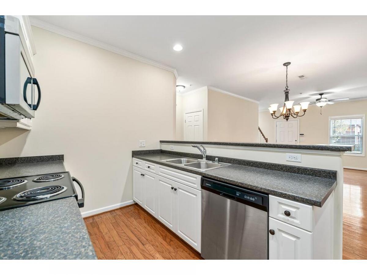 2 bedroom 2 bathroom Kitchen appliances included are Refrigerator, dishwasher, microwave, range, garbage disposal Includes clothes washer and dryer Carpet in bedrooms Blinds included Off East 10th Street