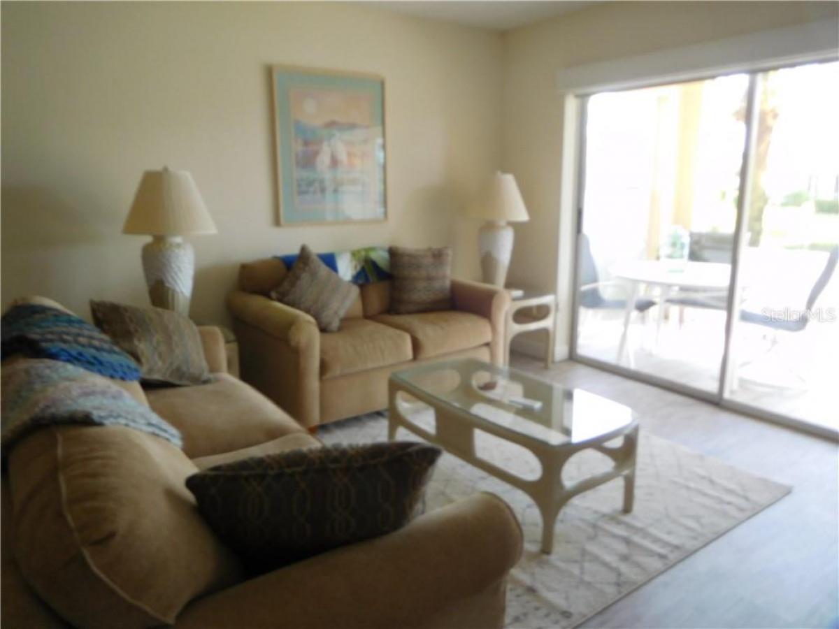 RENTED JAN. FEB. MARCH 2024. Available off-season. Exceptional ground floor vacation condo, two bedrooms, two baths, screened lanai with view of lake and golf course, nicely furnished, King bed in master, queen in guest bedroom, new living room furniture, plank wood look flooring, freshly painted, bright and cheerful unit, well-appointed, internet access, flat-screen in living room, one covered parking space, golf membership transfers if desired for $250. Complex is close to the access to the Legacy walking and biking trail, grocery stores, shops, restaurants, there is a Sprouts food market and it's only minutes to the world-famous sugary sands of Siesta Key beach. It's just a short drive to downtown Sarasota and all of the cultural activities Sarasota has to offer. Call for off-season rates.