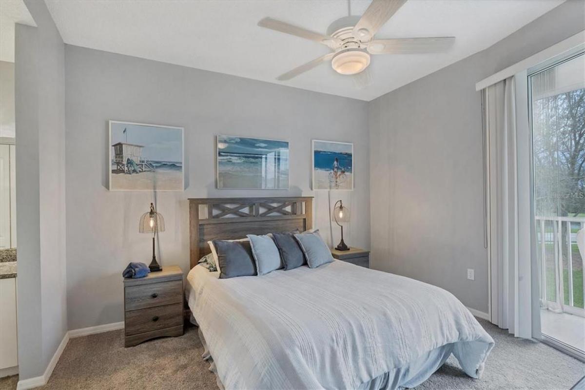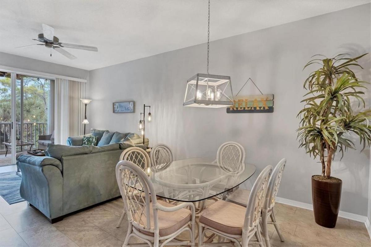 RENTED DEC., JAN., FEB., MARCH 2026: AVAILABLE OFF-SEASON. Second-floor condo at Stoneybrook Club South (in elevator building) open floor plan, vinyl flooring in main living areas, granite counters and stainless steel appliances in the kitchen, dining area is open to the living area, large smart TV, and comfortable seating. The primary bedroom has king bed, a sliding glass door out onto the lanai, a walk-in closet, granite countertops and a walk-in shower. The second bedroom has double bed and twin bed making it perfect for those occasional guests. The glassed and screened lanai extends the living space and is a welcoming spot to relax and enjoy picturesque views across the lake and surroundings. The unit provides a convenient inside laundry, one covered parking space, a storage locker, and the community pool and tennis courts are right across the parking lot. The golf or social membership are available for transfer (check with clubhouse for fee schedule) allowing full use of all amenities, including access to the newly modernized golf course, a pristine pool, tennis courts, pickleball, and a clubhouse with a full-service restaurant and much more. The community borders the Legacy walking and biking trail, is less than 15 minutes from the sugary sandy beaches of Siesta Key, the village shops and restaurants, and a short drive to downtown Sarasota to enjoy the culinary and cultural experiences that Sarasota has to offer.
