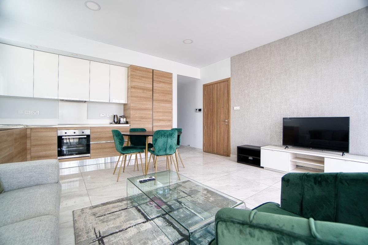 This development consists of seven (7) apartments, two (2) per story, ensuring optimum privacy for potential buyers. Each flat includes two (2) bedrooms, a kitchen bathroom, spacious dining and living area with a great large covered veranda. The main bedroom has an in-suit shower room and each apartment has its own parking space (one per apartment) and a storage room on the ground floor. The top unified apartment has also an uncovered veranda with a panoramic view.The top floor has a pool and space for mechanical equipment.