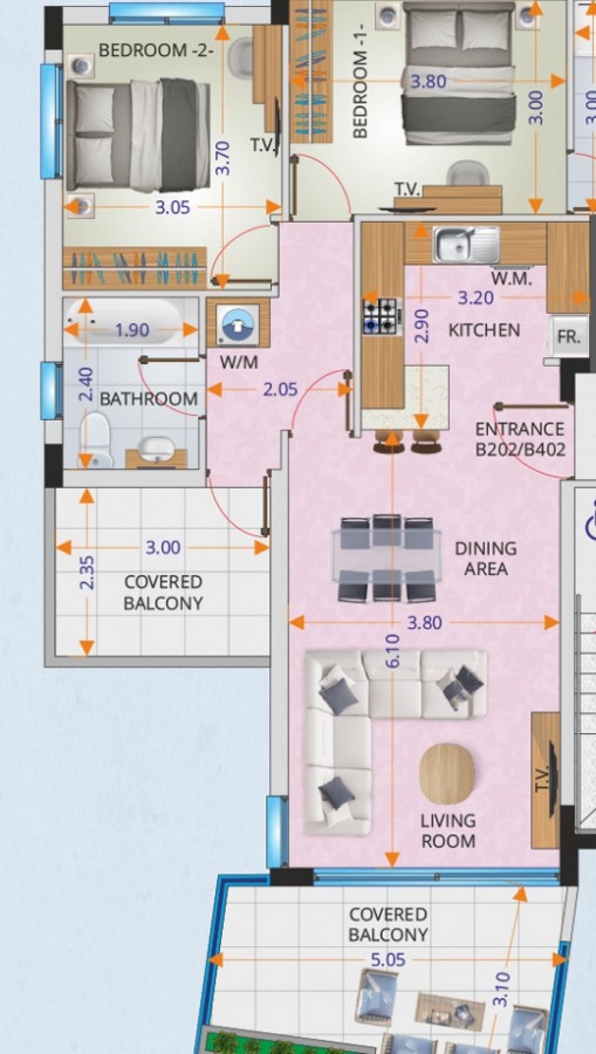 The project boasts eleven apartments in total 3 one bedroom & one bathroom on the first floor and two bedroom & 8 two bathroom apartments on rest of the floors- all with spacious and contemporary living areas. There are three apartments per storey a?? ensuring optimum privacy for potential buyers. The five floor apartments benefit from individual private and luxury roof-gardens with amazing views of the lovely Neighborhood. Each apartment has one parking bay and a storage room on the ground level.The lovely residential neighborhood is quiet and family orientated surrounded by large luxury houses and residential properties. The project is very near to supermarkets, private schools such as the American Academy and with immediate access to highways to Nicosia, Limassol, Paphos and Ammoxostos.A Delivery-December 2025
