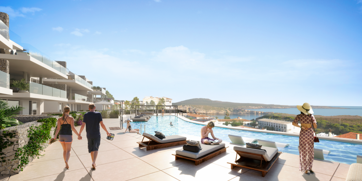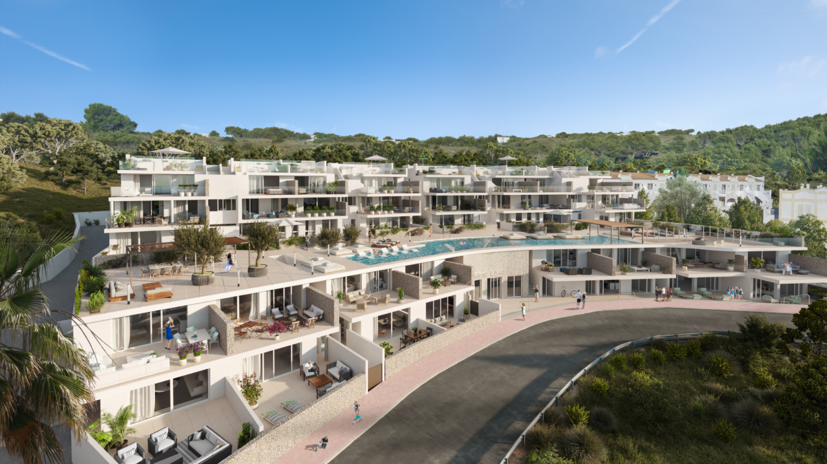 These apartments are located in a complex that offers a concept of discreet and functional luxury that is very difficult to find on this island. The intimacy and reserve of the individual apartments is harmoniously combined with common areas equipped with spaces for leisure, rest and also work and social relations. GENERAL CHARACTERISTICS Homes from 80mA? with terraces and solarium 3 rooms Parking and storage room Security camera Coworking Space Communal swimming pool Private pool in the penthouses Kid's park