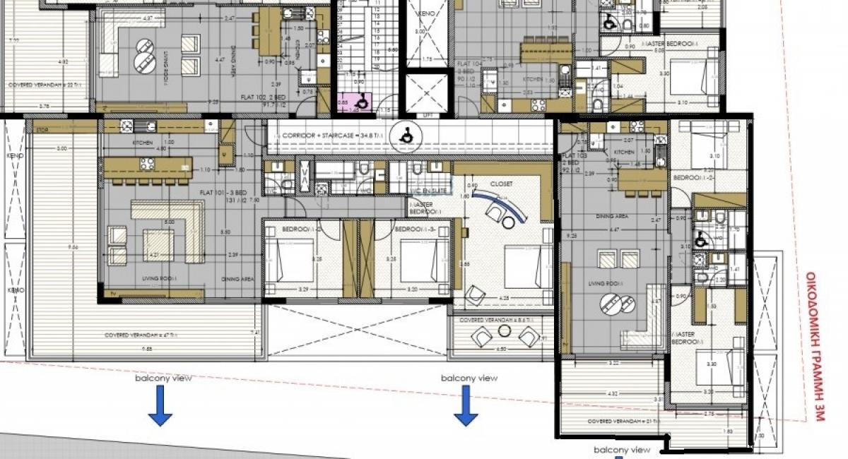 In this modern residence, there are only 10 two- and three-bedroom luxury apartments and penthouses. The top floor apartments (penthouses) have spacious private terraces with an extra room and sauna. Each apartment enjoys 3 meters height ceilings; top quality finishes, VRV Air Condition Systems, under floor water heating and Italian made Kitchens. Located in a prime location at Panthea Area next to private and local school. The apartments are in a quiet residential area enjoying uninterrupted sea view from spacious balconies and rooftops.
