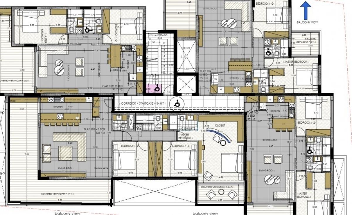 In this modern residence, there are only 10 two- and three-bedroom luxury apartments and penthouses. The top floor apartments (penthouses) have spacious private terraces with an extra room and sauna. Each apartment enjoys 3 meters height ceilings; top quality finishes, VRV Air Condition Systems, under floor water heating and Italian made Kitchens. Located in a prime location at Panthea Area next to private and local school. The apartments are in a quiet residential area enjoying uninterrupted sea view from spacious balconies and rooftops.