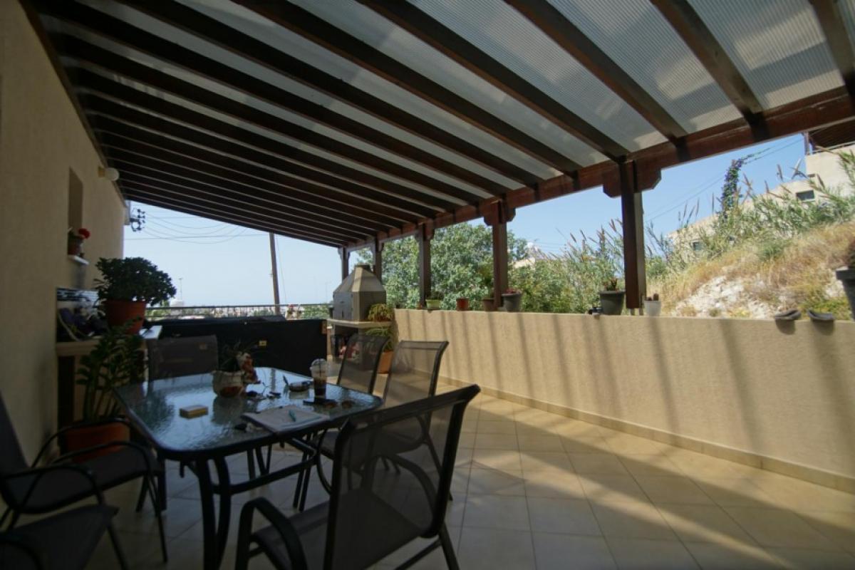 Located in exo vrisi, a stunning 2 bedroom apartment finished to a very high standard.A Upon entering the property you are met with the very spacious, open kitchen/dining/living area. In the kitchen you will notice there are high quality, Miele appliances used there. There is also back lighting behind all the kitchen units illuminating the work tops.A There are 2 spacious bedrooms both leading out onto a 20sqm covered veranda with magnificent views down to the sea.A Outside the property there is a very large veranda that covers 40sqm, it is equipped with an outside kitchen and a small utility area with a washing machine and cupboards space.A