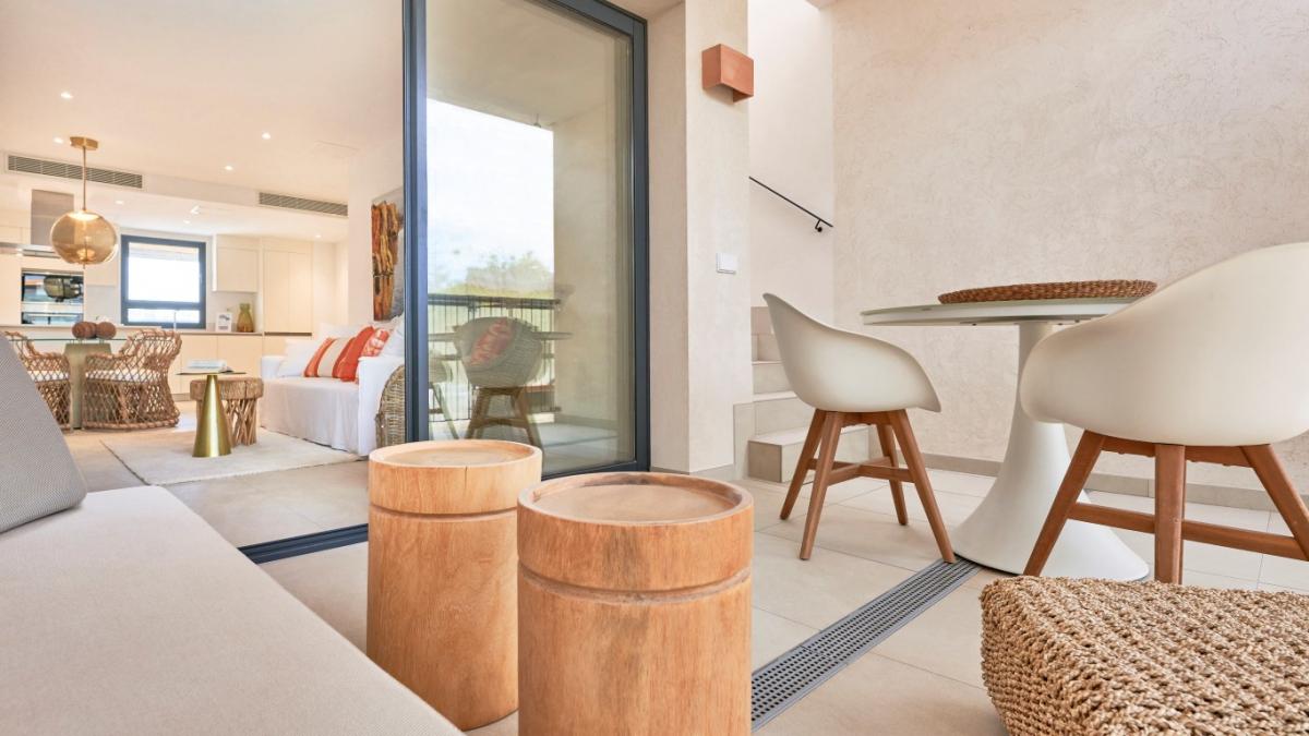 Es balcA?: new apartments and duplex homes in the picturesque mallorcan village of ses salines, on the south coast of mallorcaEs BalcA? is a development of apartments and duplexes in truly authentic Mallorcan style, situated just a few metres from the heart of Ses Salines village life.This residential development comprises ground floor apartments with large terraces and penthouses with direct access to their own solarium terrace. There are also duplex homes with terraces and solarium. The homes have 2 or 3 double bedrooms and 2 bathrooms.At Es BalcA? we are keen to respect traditional Mallorcan architectural style and also ensure that the development blends into the typically Mallorcan scenery. Its privileged location means that many of the homes have stunning sea views, and some can see the island of Cabrera from the solarium terrace.The project has been designed with the intention of providing the highest level of space and comfort.An outdoor parking space and a storage room are included with each home.Estimated completion date: June 2024. Quality finishesThe kitchen is fitted with lower cupboard units in pale colours and a Silestone worktop. A selection of appliances (induction hob, oven and extractor hood) by Bosch are included.Bathrooms have a wall-mounted wooden unit with either single or double washbasins, a shower with flush-to-floor shower tray and recessed taps by Tres.A large format ceramic tile by Saloni has been selected for all rooms throughout the homes and the same tile in its non-slip version continues on the terraces.The homes will have an air-to-air heat pump air conditioning system via ducts and grilles with split units concealed in the false ceiling. An air source heat pump produces the domestic hot water. For sale direct from Taylor Wimpey EspaA?a. 65 years building homes in Spain.