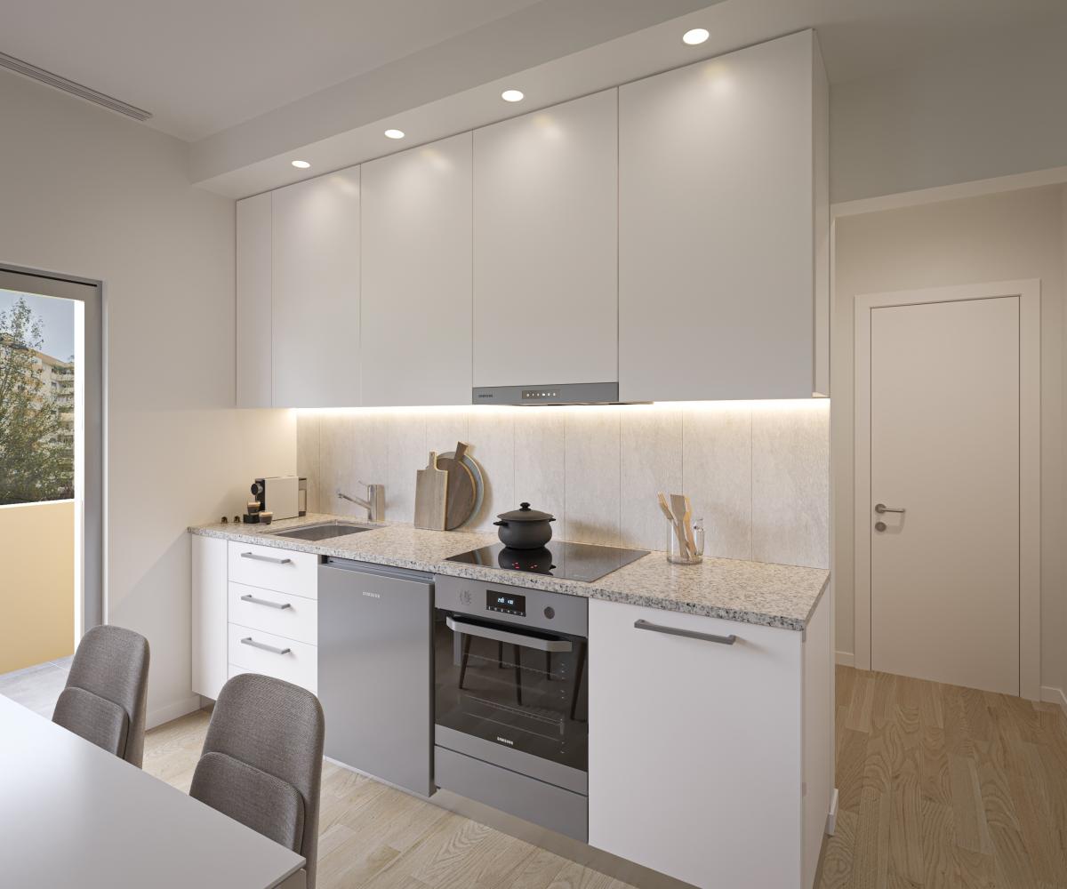 Beautiful 3-bedroom apartment with total refurbishment located next to Av. dos Bons Amigos in CacA(C)m, on the 2nd floor of a building with an elevator. Very sunny, with excellent sun exposure, and close to all kinds of shops, supermarkets, services, public transport and the Agualva-CacA(C)m train station. The 80 m2 of gross private area are distributed as follows:- Large living room with 32m2;- Semi-equipped American kitchen with electric appliances (hob, oven, extractor fan and water heater);- 1 en-suite bedroom with balcony, closet and private bathroom;- 2 bedrooms, one with a balcony and the other with a large window;- Full bathroom for general use;- Balcony common to the living room and the 2 bedrooms, measuring 13 m2;