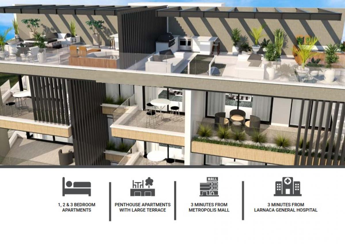 This is is a new luxurious project in Larnaca. The project is a high-end residential building, strategically located near all local amenities with easy access to surrounding areas providing residents with fast accessibility to major landmarks. The project is redefining the area's architecture with its elegance and high-quality qualifications.