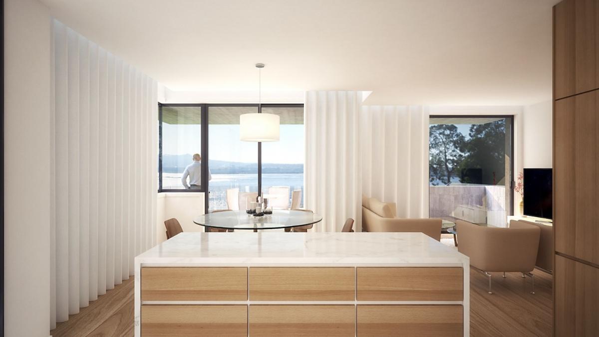 3-bedroom apartment, located on the 3rd floor of a building under construction with good location, areas and amenities.This apartment will have a gross private area of a??139.7mA? , a balcony of 13.55mA? and laundry room.This fraction will be composed of a hallway, living room, 3 bedrooms, 3 bathrooms.Finishes and equipment: multilayer flooring, with natural oak wood, peripheral walls and ceilings in plasterboard, cabinets with oak leaf finish or lacquered finish, LED strips embedded in the false ceiling, conditioner, electric shutters, double glazed windows, video intercom and security door.The kitchen area will have ceramic tile flooring, built-in cupboards, the kitchen will be fully equipped with fridge, extractor, hob, oven, microwave and Bosch dishwasher.In the bathroom area, there will be ceramic flooring and built-in furniture and suspended sanitary ware.Also within the same building, there is a closed garage with electric vehicles charger.It is located in an area surrounded by:Marginal Garden;Viana do Castelo Marine;Viana do Castelo Park;River Beach;Santa Maria Maior Secondary School.Construction is expected to be completed in April 2022.