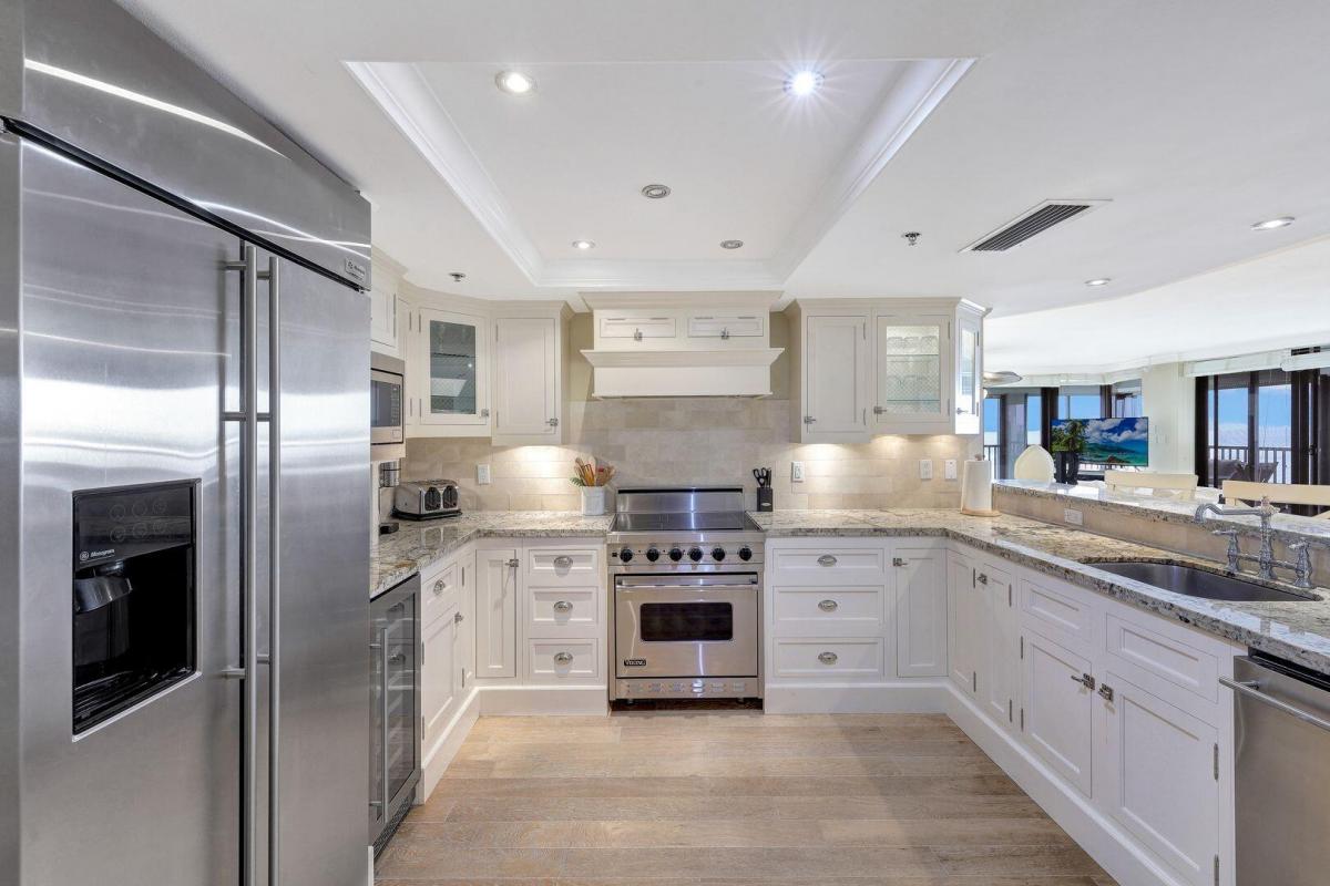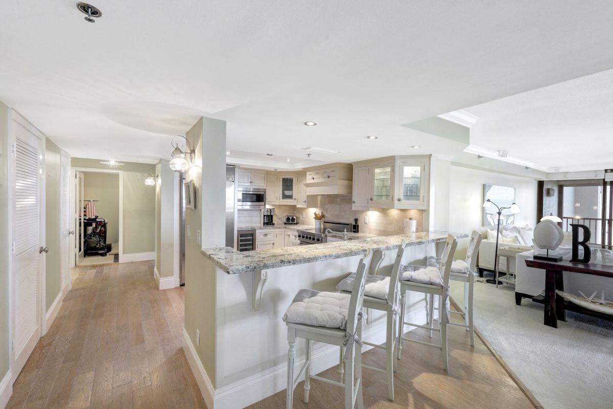 Experience life at Crescent Beach! Located on an oversized property in the prime location of Marco Island's pristine beach, this condo offers an array of amenities including tennis courts, pickleball courts, shuffleboard court, resort style pool and whirlpool spa with extended huge sundeck, two exercise/fitness rooms, social room with screened lanai, all within steps of our beach. Residence #608 offers a remodeled interior with three bedrooms and is on the rarely available and extremely desirable north side of the building. Enjoy sweeping views of the Gulf of Mexico and the beach. Balcony has a screened in portion, as well as a portion which is open, with elegance spaces for family use and entertaining.