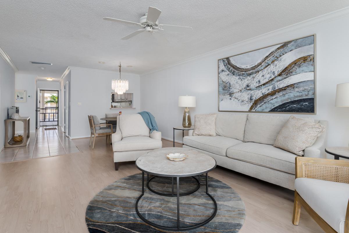 This charming and well-maintained end unit offers 2 spacious bedrooms and 2 full bathrooms in a prime location just a short stroll to South Beach. The condo features modern stainless steel appliances, in-unit laundry, electric storm shutters, and impact glass windows for added peace of mind.Enjoy relaxing or entertaining on the expansive screened lanai, which overlooks a lushly landscaped southern exposure, providing serene views and plenty of natural light.Offered turnkey furnished, this residence also includes a reserved under-building parking space and a large private storage room—a rare and valuable combination.The condo fee covers all utilities except electricity, making it an excellent value.Don't miss this exceptional opportunity to own a beautiful, move-in ready beachside retreat!