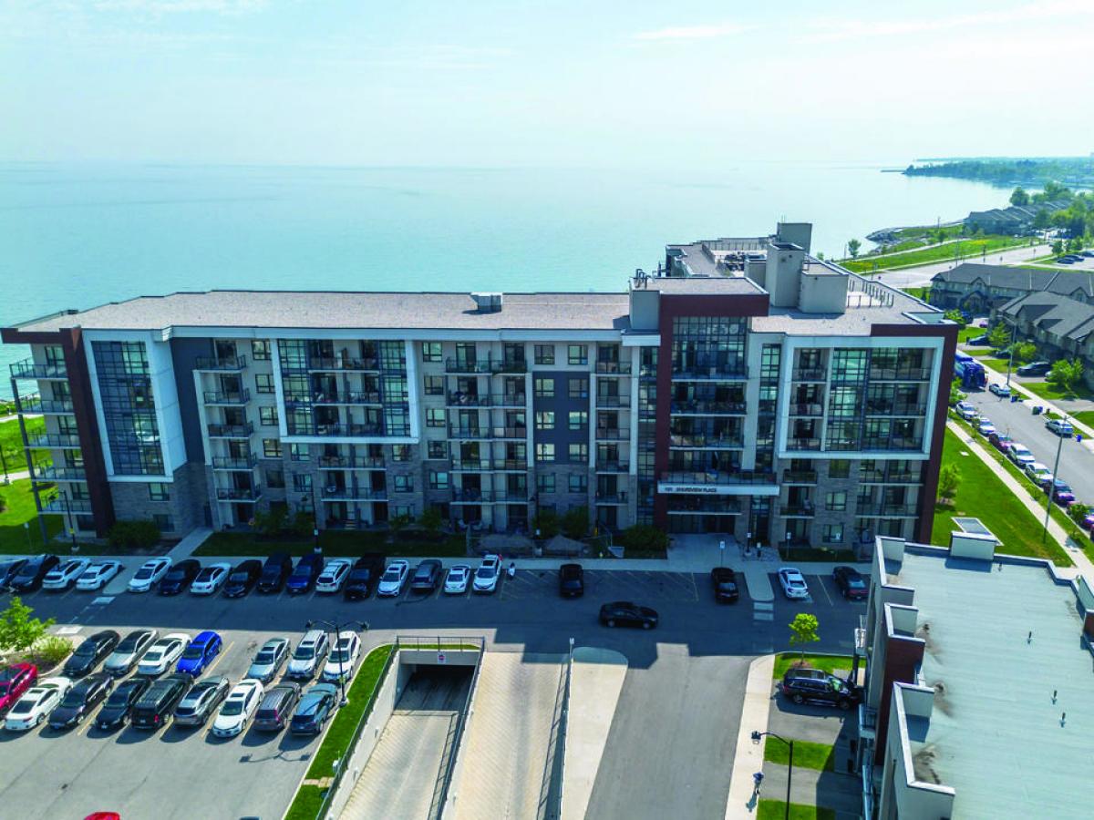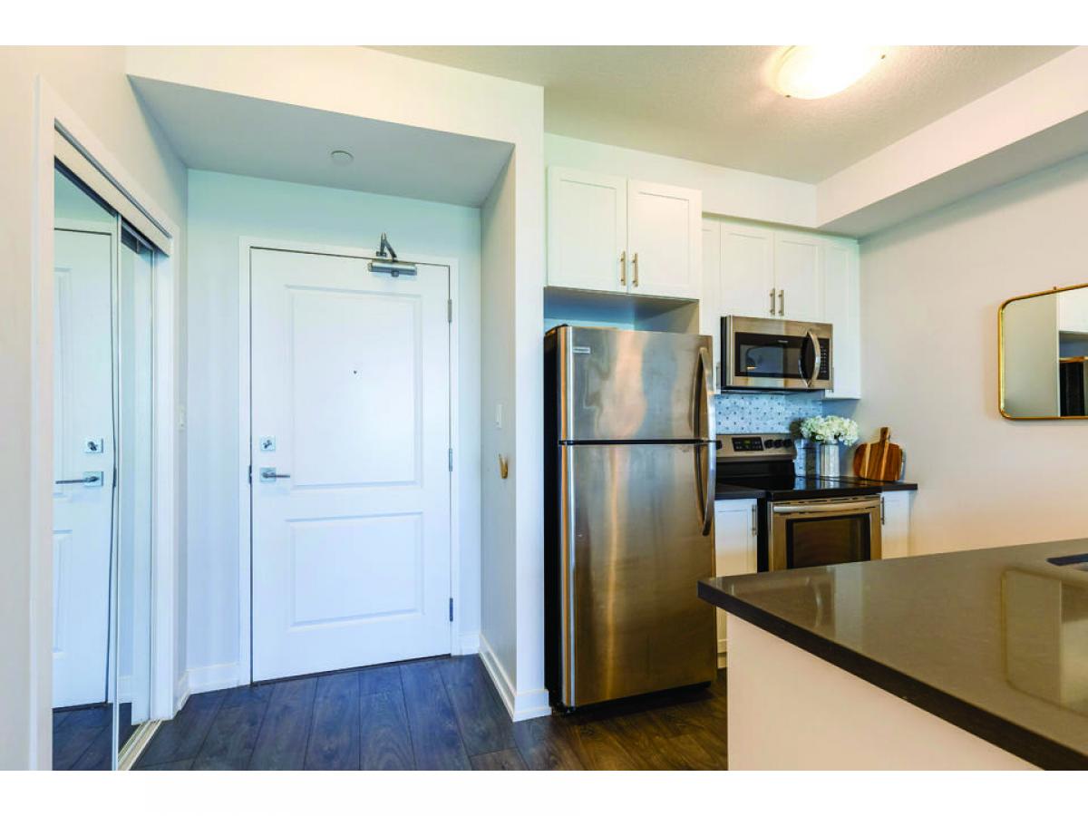 Nestled on a cul-de-sac overlooking Lake Ontario, this boutique low-rise condo offers the ultimate lakefront lifestyle with easy access to the waterfront, trails, and parks. The sun-drenched unit boasts 9-foot ceilings and an open-concept layout with 1 bedroom and 1 bathroom, and features wide plank flooring throughout. The spacious bedroom includes an oversized window with lake views and a generous walk-in closet. The kitchen is equipped with upgraded white cabinetry, quartz countertops, stainless steel appliances, a tiled backsplash, and modern lighting. Perfect for everyday living or entertaining, the open layout provides seamless flow. Enjoy unobstructed water views from your private balcony, in-suite laundry, and a geothermal heating and cooling system. Condo amenities include a gym, party room, and a rooftop terrace with panoramic views of Lake Ontario and the Toronto skyline. $$$ spent upgrades throughout the unit. 1 parking & 1 locker included. Bike storage and visitor parking available. Experience the best of waterfront living while enjoying the convenience of nearby amenities & easy hwy access! Perfect for young professionals, retirees, commuters