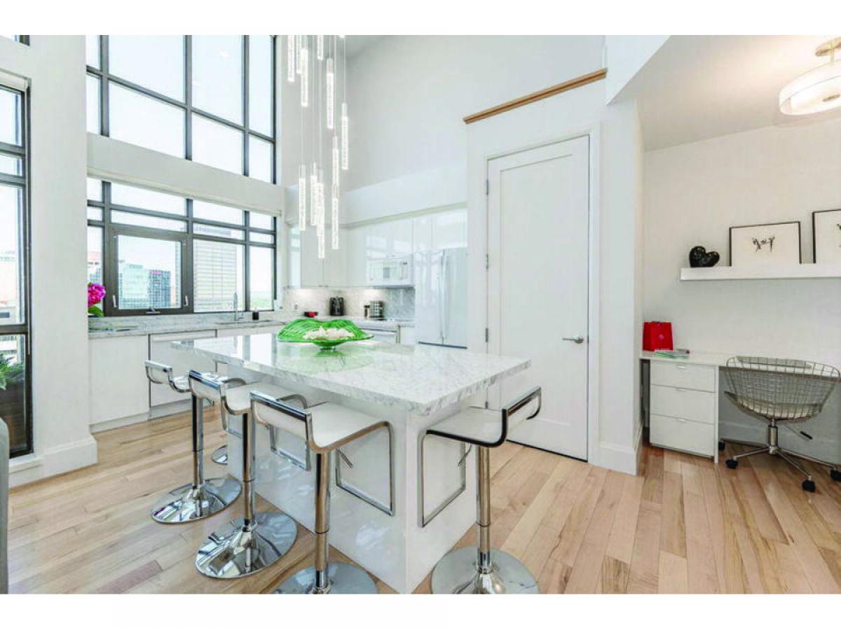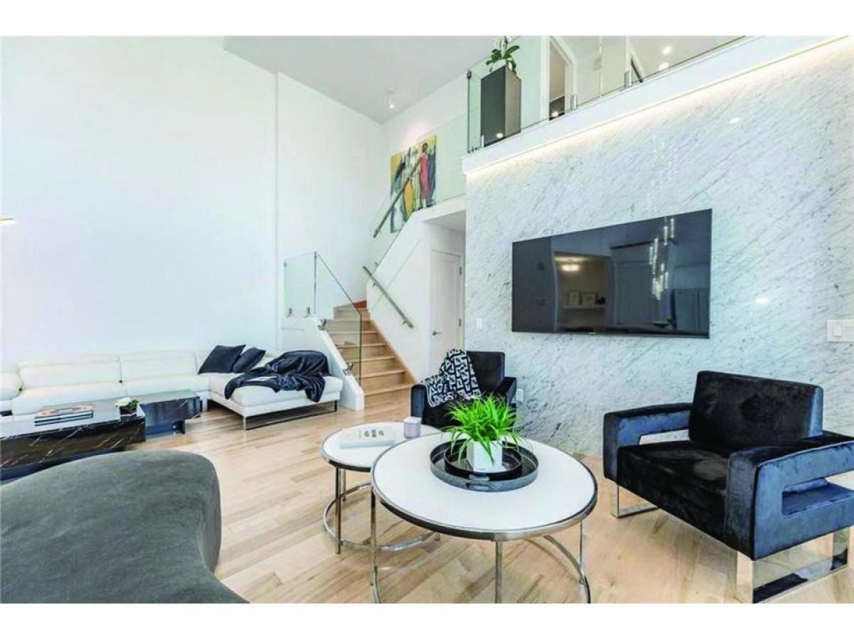 2 storey loft with modern finishes, fixtures & amenities. 18' ceilings, two storey windows, maple floors, glass railing, spectacular views from the 13th floor penthouse balcony. Primary bedrm w/ walk in closet & ensuite. 2nd floor loft bedrm & ensuite. In-suite laundry. Private underground parking spot & 2 lockers. Steps to James St Art Crawl, shops, restaurants, St. Joseph's Hospital & McMaster.