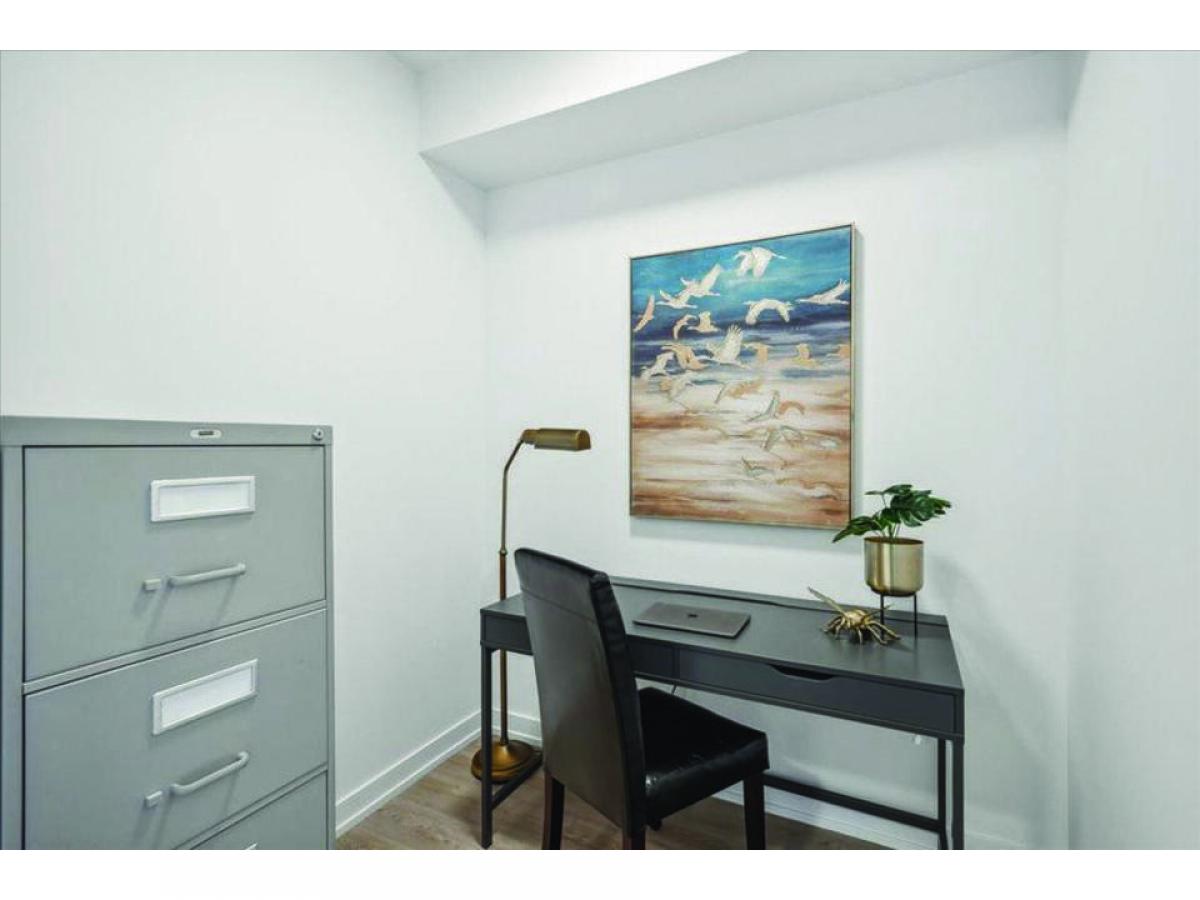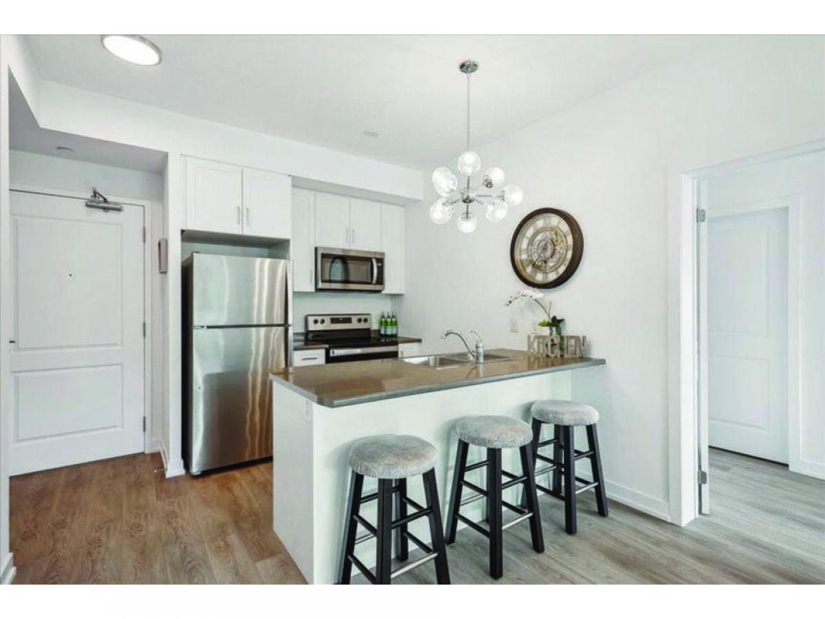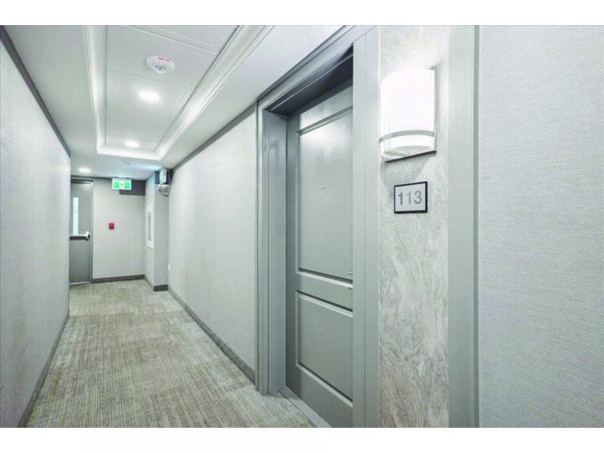 Fabulous 2 BR + Den, 2 full bath, offering 860 sq ft in this bright main floor private unit located at the back corner of the building, with walk out to L shaped patio. Vinyl laminate floors throughout, upgraded light fixtures, primary with walk in closet & ensuite with large shower, in-suite laundry. Great amenities including, beautiful courtyard, roof top patio, exercise room, party room. Locker conveniently located adjacent to unit, one underground parking spot.