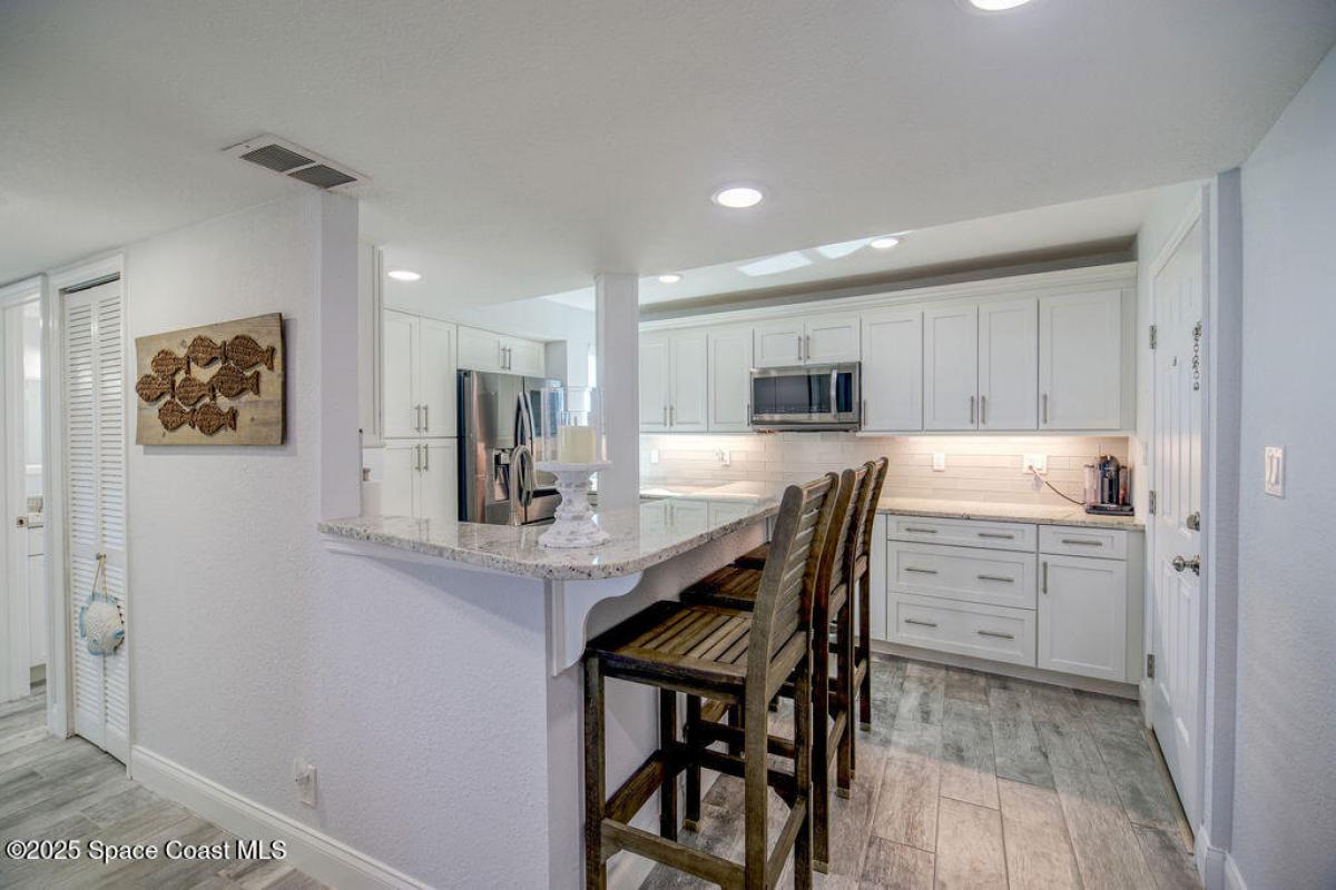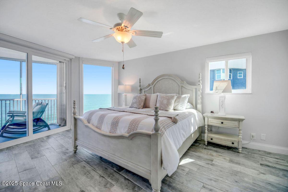 Immaculate 7th-Floor Corner Unit in Buccaneers Condo!Stunning 3BR/2BA oceanfront condo in Satellite Beach with 2 screened balconies offering sweeping Atlantic and pool views. Private beach access, Clubhouse and Community Pool. Fully remodeled, featuring tile throughout, textured ceilings/walls, new interior paint, and high-end finishes. Updated kitchen with white cabinets & granite countertops. Master suite offers direct ocean views, enlarged closet, and updated bath. Second bedroom includes its own private balcony. 3 bedroom with its own privacy. Additional features: 2018 Trane A/C, high-end exterior balcony fans, extra storage, impact windows & accordion shutters, and 1 underground parking space. Absolutely pristine and move-in ready. No assessments. Units like this are extremely sought-after and rarely hit the market—don't miss your chance! Schedule your showing today before this one is gone!