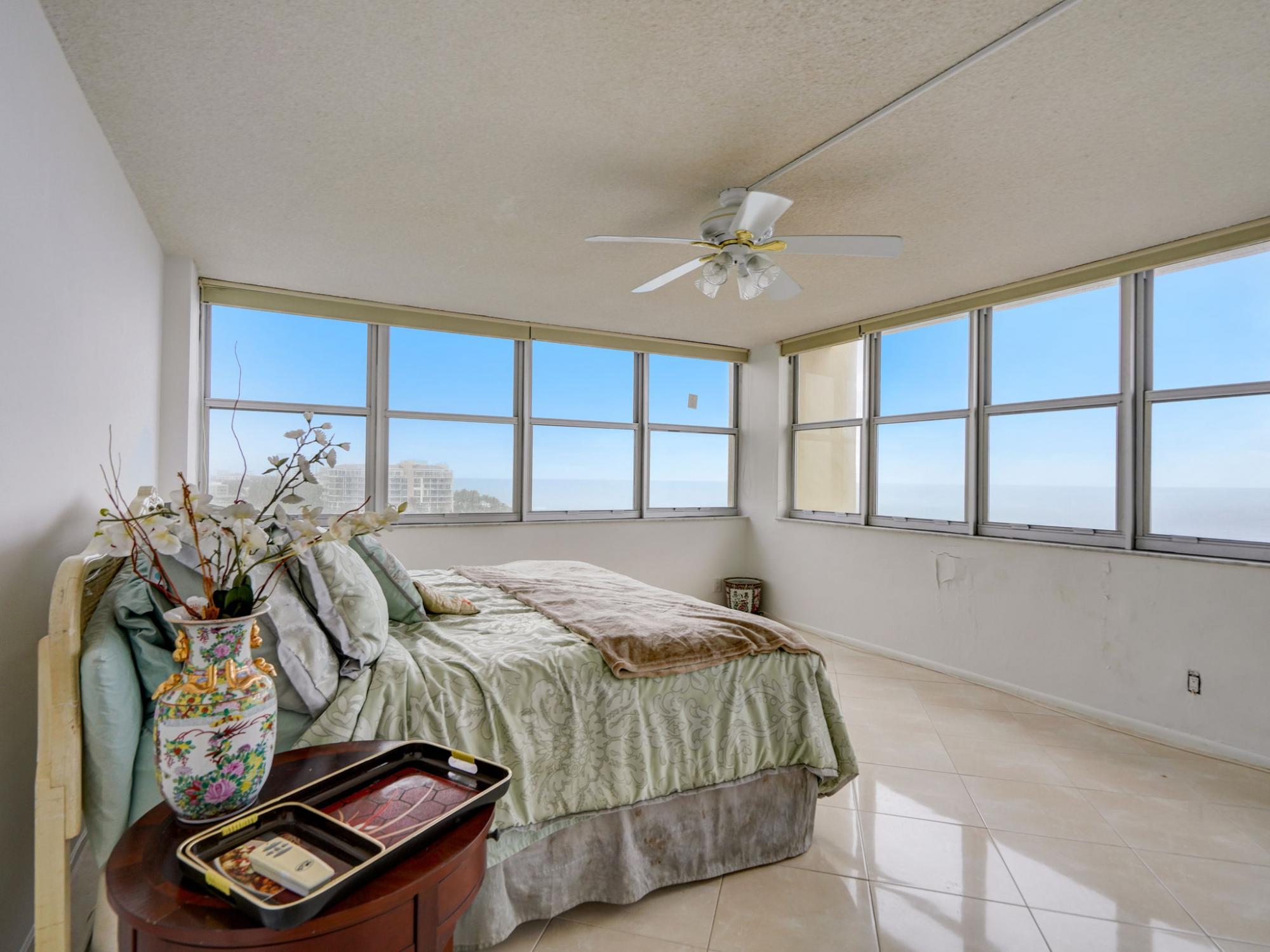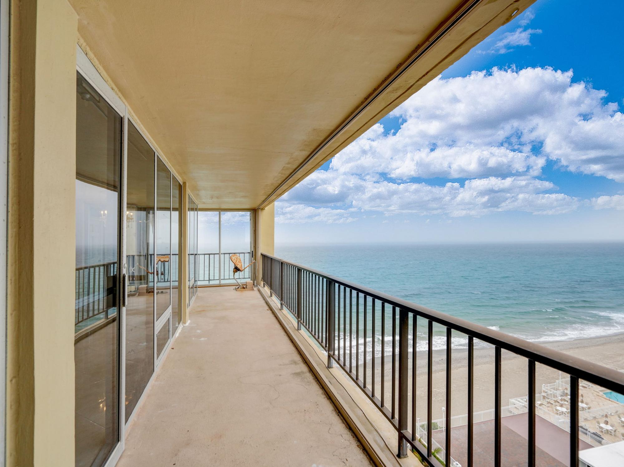 This extraordinary oceanfront unit is strategically positioned to offer one of the most coveted pieces of real estate in Boca Raton and showcases beautiful panoramic views of the Atlantic Ocean and intercoastal from every room within the condo and your wrap-around balcony. The expansive and unobstructed views from the north side showcase neighboring South Inlet State Park and the unmatched beauty of the coastal landscape with no possibility of future development. This 2250 sf unit is accessed through private 2-unit elevator lobby and is crafted with a 3-bedroom, 2 and 1/2 bathroom bright, open floor plan which fosters an atmosphere of warmth and welcome through its porcelain finishes and granite kitchen.This 'as is' property already offers the added assurance of hurricane shutters, with plans in motion for new impact windows and double sliders to the balcony. Inside, this condo is already equipped with granite counters/backsplash, a newly installed refrigerator, washing machine, and central A/C. Residing in the exquisite Cloister Del Mar condo comes with an array of perks and amenities to enjoy. A welcoming lobby, and a fully-equipped oceanfront social room with a full granite kitchen set the stage for an inviting environment. Cloister Del Mar offers several amenities to residents including direct private beach access, heated oceanfront pool, a BBQ area, fitness center, newly decorated lobby, picnic area, sauna, storage, secure underground garage parking and new onsite Condo management. Safety is a priority with 24-hour security, manned-gate, entry phone, private guards, and surveillance. Your dream coastal paradise is awaiting- grab it before it's gone!