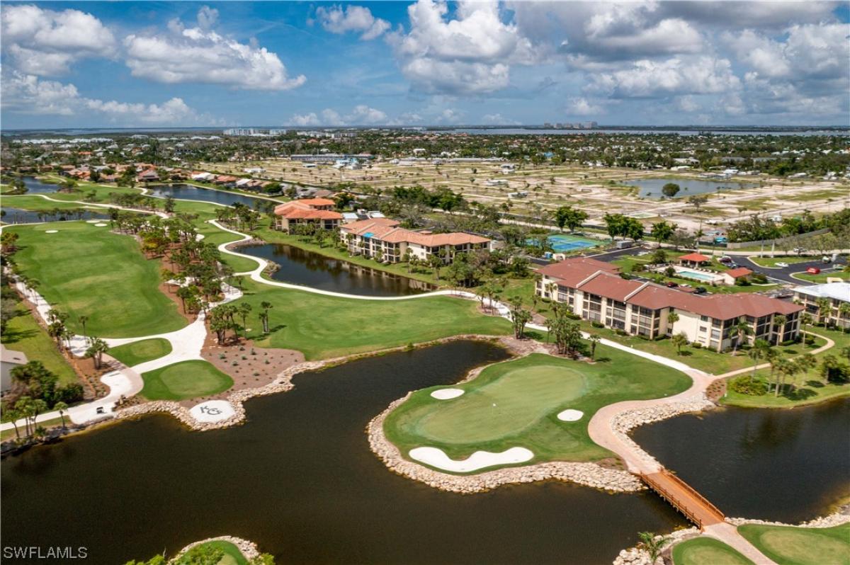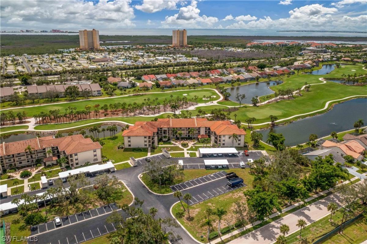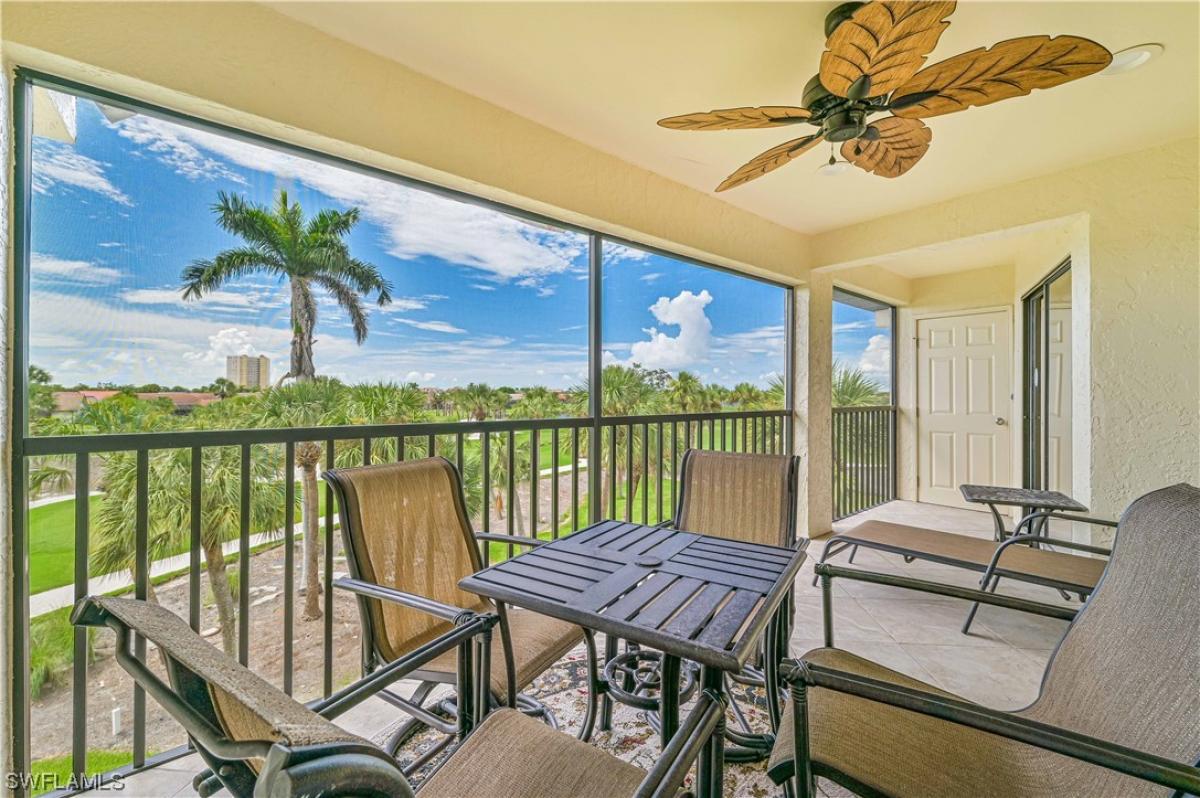 Luxury and Gulf Awaits! Exquisite 2BR/2BA Top-Floor Remodeled Residence, Impeccably Crafted with Timeless Elegance. This Turnkey Exquisitely Furnished Haven Offers Captivating Golf Course Views, Covered Parking, and a spacious Exterior Storage Closet. Revel in the Finest Details: Gleaming Tile Floors, Crown Molding, Detailed Baseboards, Refined Canned Lighting, Impact Sliders, and Sumptuous Custom Closets. The Gourmet Kitchen Features Opulent High-End Cherry Cabinetry, Granite Countertops, Stainless Steel Appliances, Glass Front Cabinet Doors, a Graceful Tile Backsplash, and an Inviting Built-In Desk. Enjoy Modern Comfort with a newer Refrigerator & A/C in 2022. Both Bathrooms Showcase Floor-to-Ceiling Tile for a Luxurious Spa Experience. Relax and Watch Golfers on Your Oversized Screened Lanai. Kelly Greens, a Highly Regarded Bundled Golf Community, Boasts Abundant Amenities - Tennis, Pickleball, Bocce, Dining, and a Fitness Center. Plus, it's Conveniently Close to Sanibel & Ft. Myers Beach. Enjoy Resort-Style Living with Access to the Golf Course, Community Spa/Hot Tub, and an Amazing Pool. Don't Miss Your Chance to Experience the Epitome of Prestigious Living!