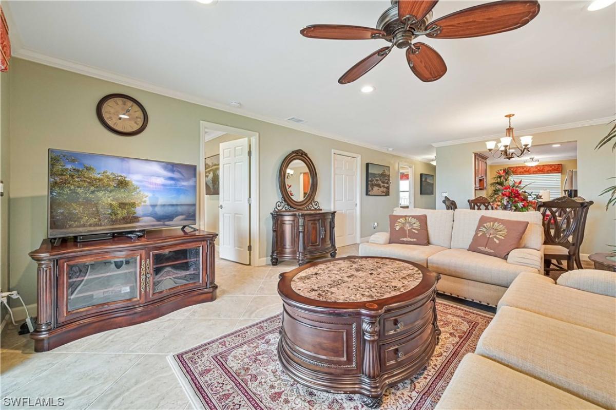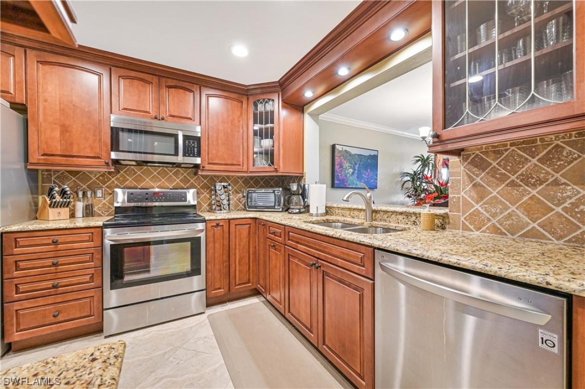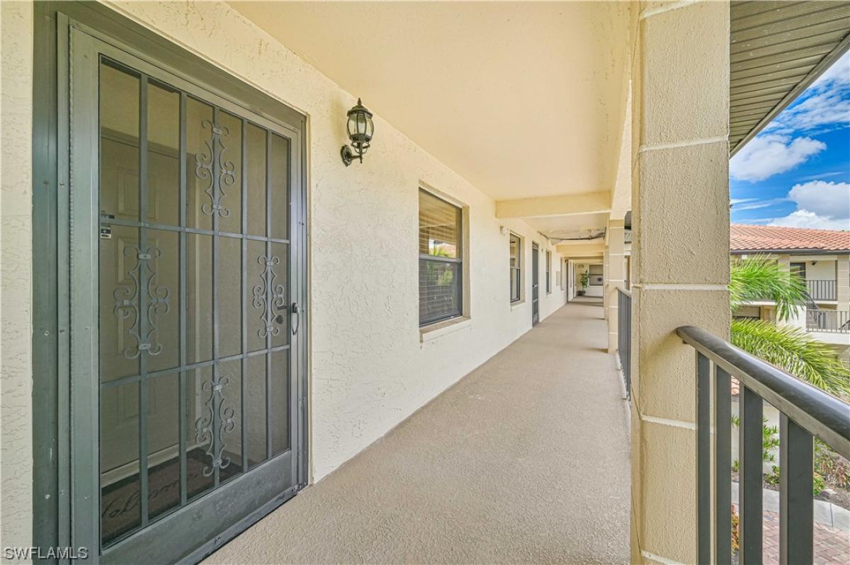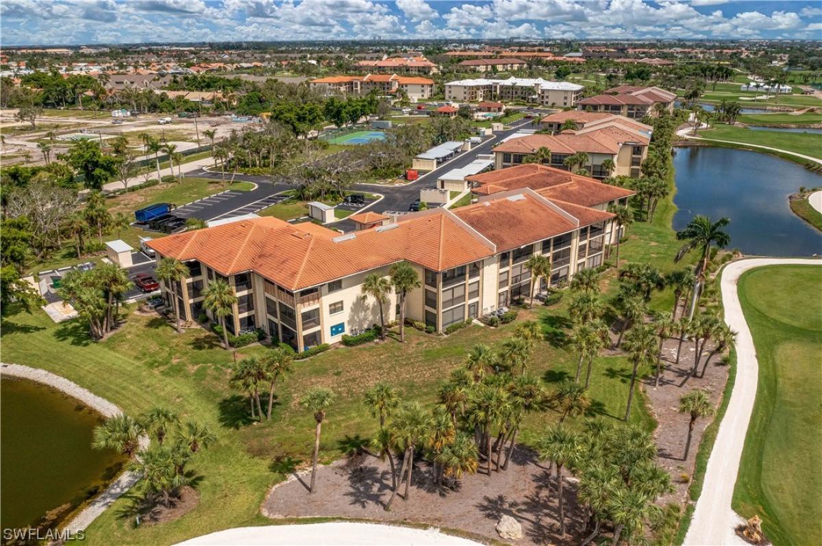 Luxury and Gulf Awaits! Exquisite 2BR/2BA Top-Floor Remodeled Residence, Impeccably Crafted with Timeless Elegance. This Turnkey Exquisitely Furnished Haven Offers Captivating Golf Course Views, Covered Parking, and a spacious Exterior Storage Closet. Revel in the Finest Details: Gleaming Tile Floors, Crown Molding, Detailed Baseboards, Refined Canned Lighting, Impact Sliders, and Sumptuous Custom Closets. The Gourmet Kitchen Features Opulent High-End Cherry Cabinetry, Granite Countertops, Stainless Steel Appliances, Glass Front Cabinet Doors, a Graceful Tile Backsplash, and an Inviting Built-In Desk. Enjoy Modern Comfort with a newer Refrigerator & A/C in 2022. Both Bathrooms Showcase Floor-to-Ceiling Tile for a Luxurious Spa Experience. Relax and Watch Golfers on Your Oversized Screened Lanai. Kelly Greens, a Highly Regarded Bundled Golf Community, Boasts Abundant Amenities - Tennis, Pickleball, Bocce, Dining, and a Fitness Center. Plus, it's Conveniently Close to Sanibel & Ft. Myers Beach. Enjoy Resort-Style Living with Access to the Golf Course, Community Spa/Hot Tub, and an Amazing Pool. Don't Miss Your Chance to Experience the Epitome of Prestigious Living!