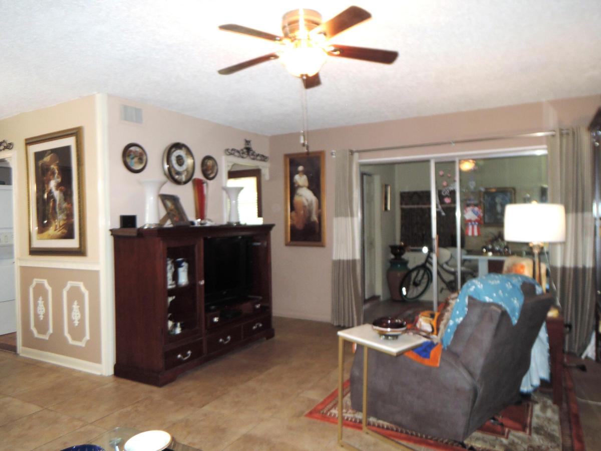 Quiet Cul-de-sac setting is this 1st floor corner condo, w/private side yard & canal in back. Unique interior finishes will amaze you as you enter the foyer, w/tiled entry, impressive wood trim everywhere + crown molding. 2025 new AC system. Tiled floors throughout. Kitchen features wood cabinets, few SS appliances, full size stack front loader W/D. Extra cabinet + counter space allows additional storage & prep areas. Master bedroom features desk area, ceiling fan + updated bath w/vanity, tiled shower & organized walk-in closet. Like to entertain than you'll enjoy the fine finishes to this FL RM, more insulation on the ceiling & walls, sit-at bar w/built-ins behind & in closet area. Leaving slider open allows the AC to cool this area. An open patio to grill out in this quiet setting.