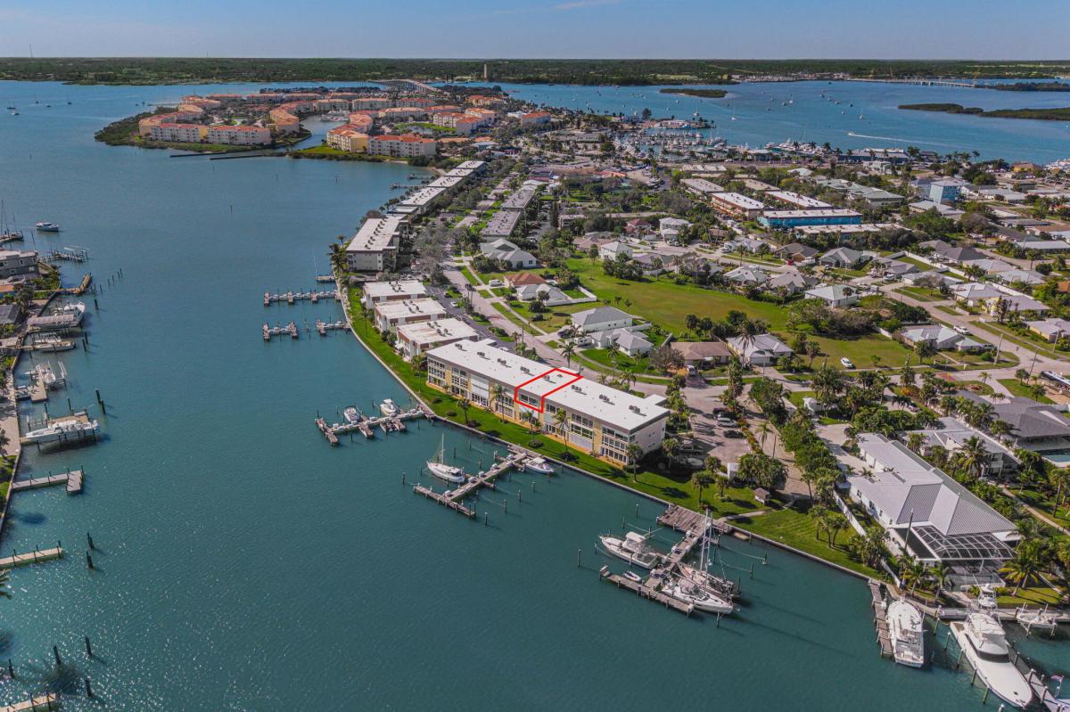 Enjoy Spectacular Intercoastal & Marina views from this Penthouse unit. Million $$ Thumb Point homes can be seen from the BEST building in this 55+ complex, says the owner. Additional event space + waterfront deck at the end of this building, makes it easy for owners to participate. Docks are owned by the association w/low monthly rental fees, therefore its ideal for Boat Owners to have their vessel in view, a BOATER'S DELIGHT. Sellers have maintained their condo w/these improvements: Kitchen w/granite counters, wood cabinets, some stainless appliances including range w/air fryer. Tile floors throughout + impact windows on FL RM that serves as their dining area & electric shutters for storm protection. The building had been totally rebuilt after the 2004 storms therefore newer electricalwiring, plumbing pipes, fixtures, new roof 2025. AC was installed in 2012 & serviced every 6 months + water heater replaced in 2023. Come see this well-maintained 3rd floor condo & you'll notice the breathtaking waterfront view from the moment you step into this condo. HURRY